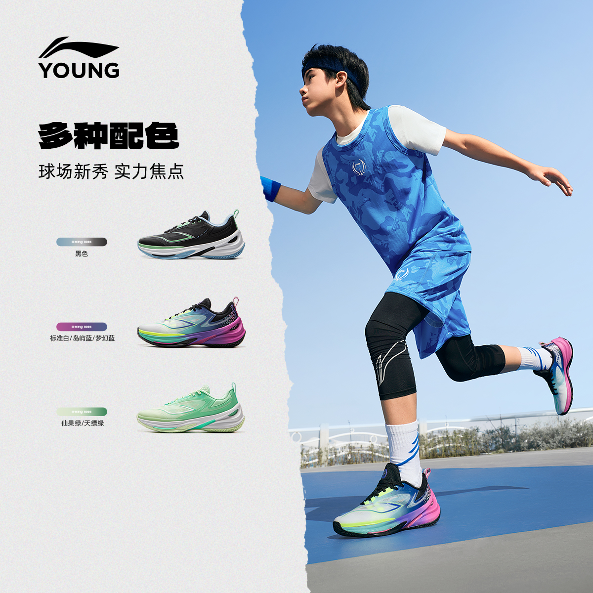 李宁童鞋篮球鞋男大童2025新款回弹支撑稳定透气清凉反光低帮童鞋