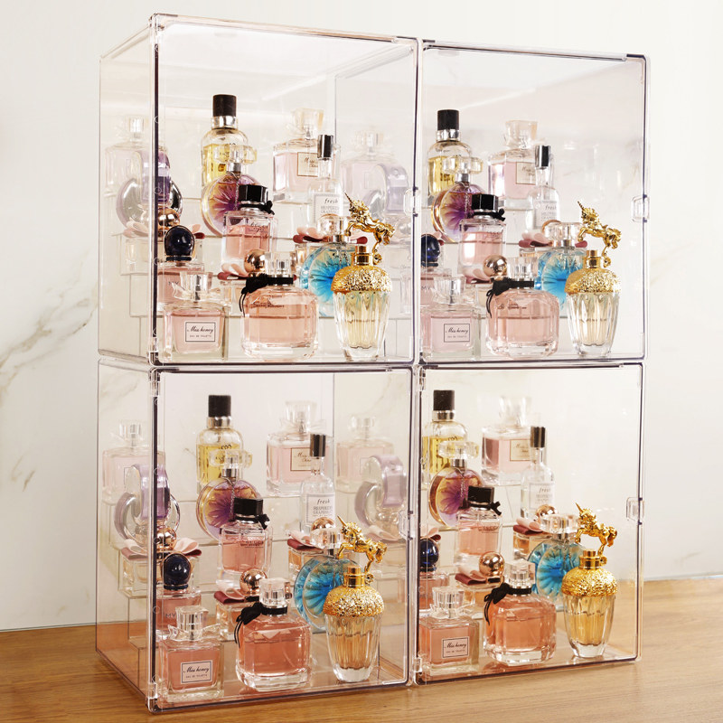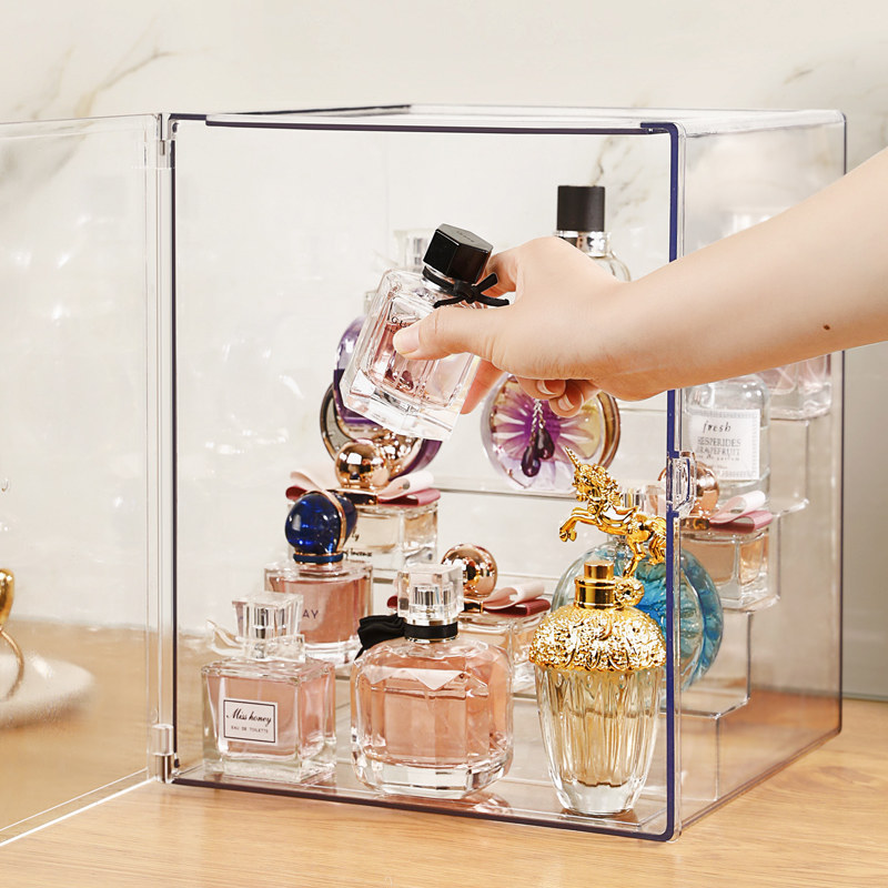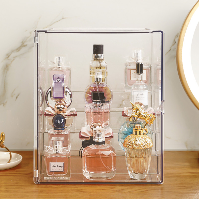 香水置物架展示柜桌面防尘化妆品收纳盒透明亚克力护肤品整理架子