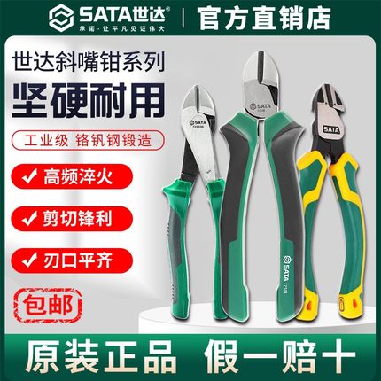 Sata/世达五金工业级斜嘴钳偏口钳剪线钳剪钢丝省力5/6/7/8寸钳子