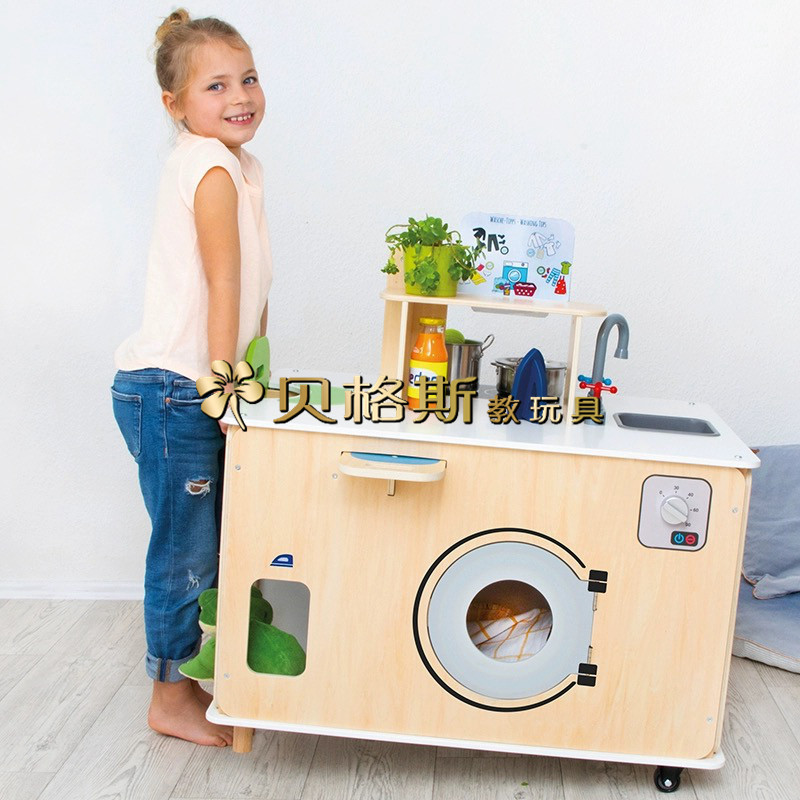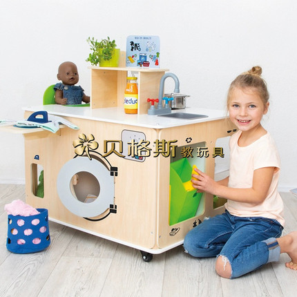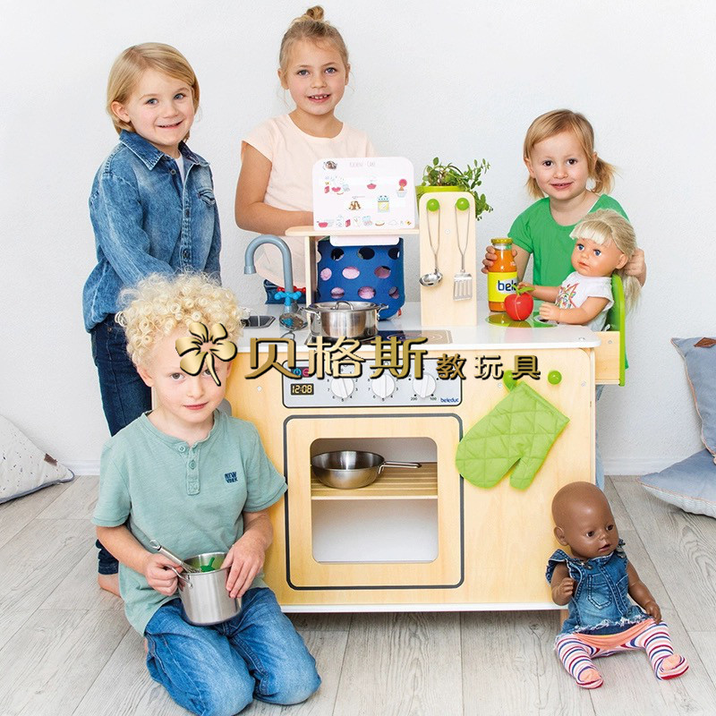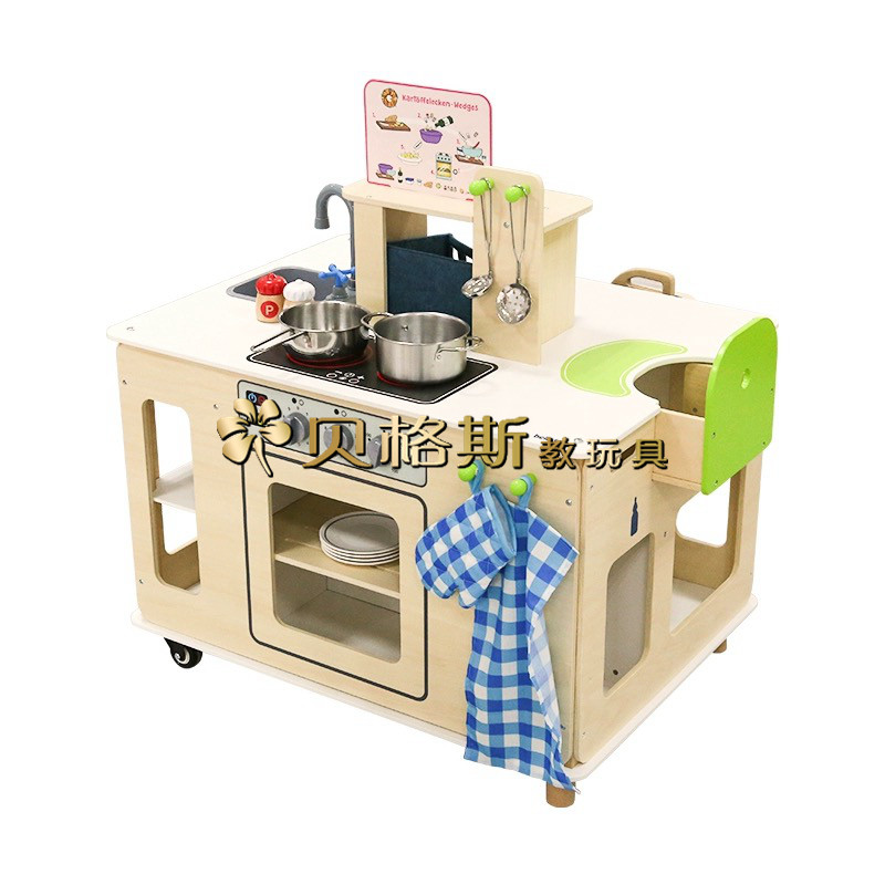 幼儿园儿童仿真多功能移动厨房木制角色扮演做饭灶台早教烹饪食材