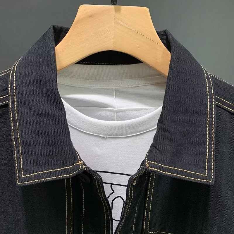 春秋新款高端辑明线复古牛仔夹克男士时尚潮牌宽松工装外套男上衣