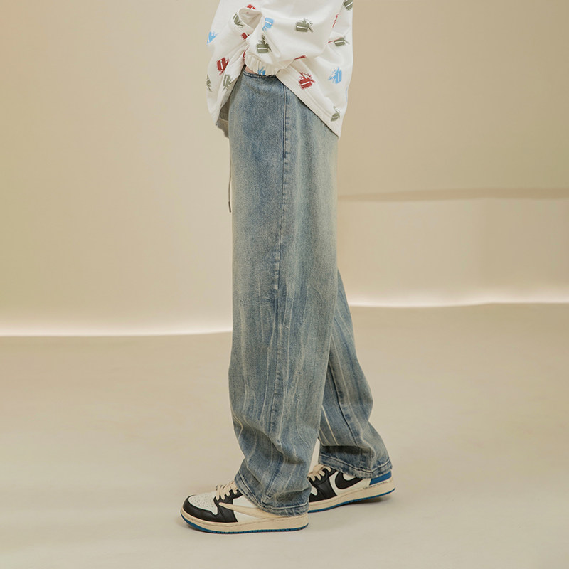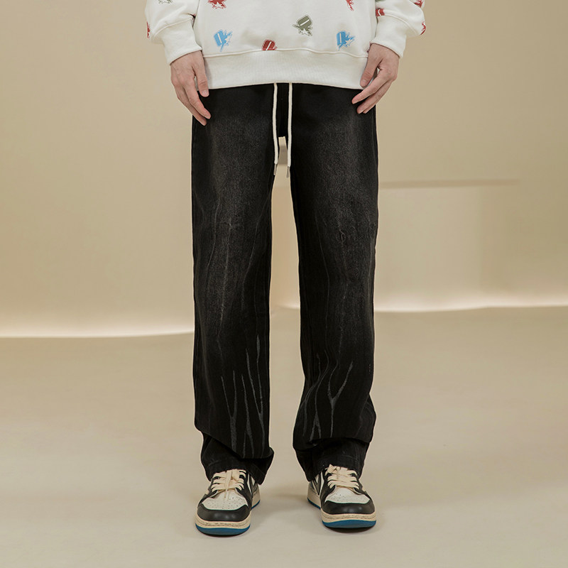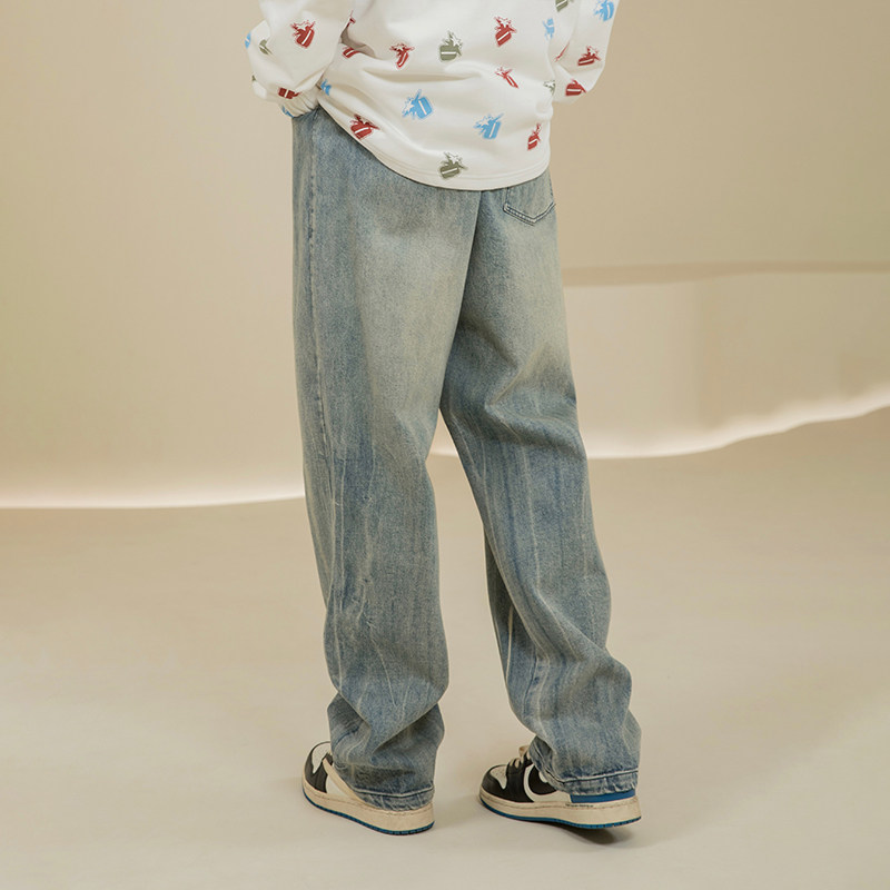 烦恼的Octopusl复古水洗扎染牛仔裤美式直筒宽松休闲vibe长裤子男
