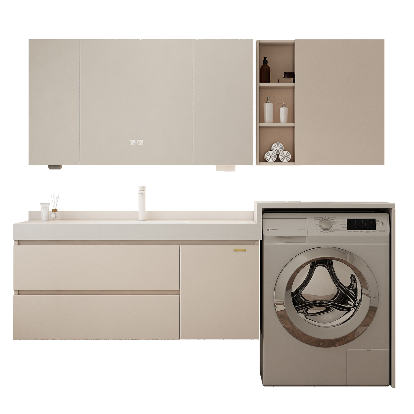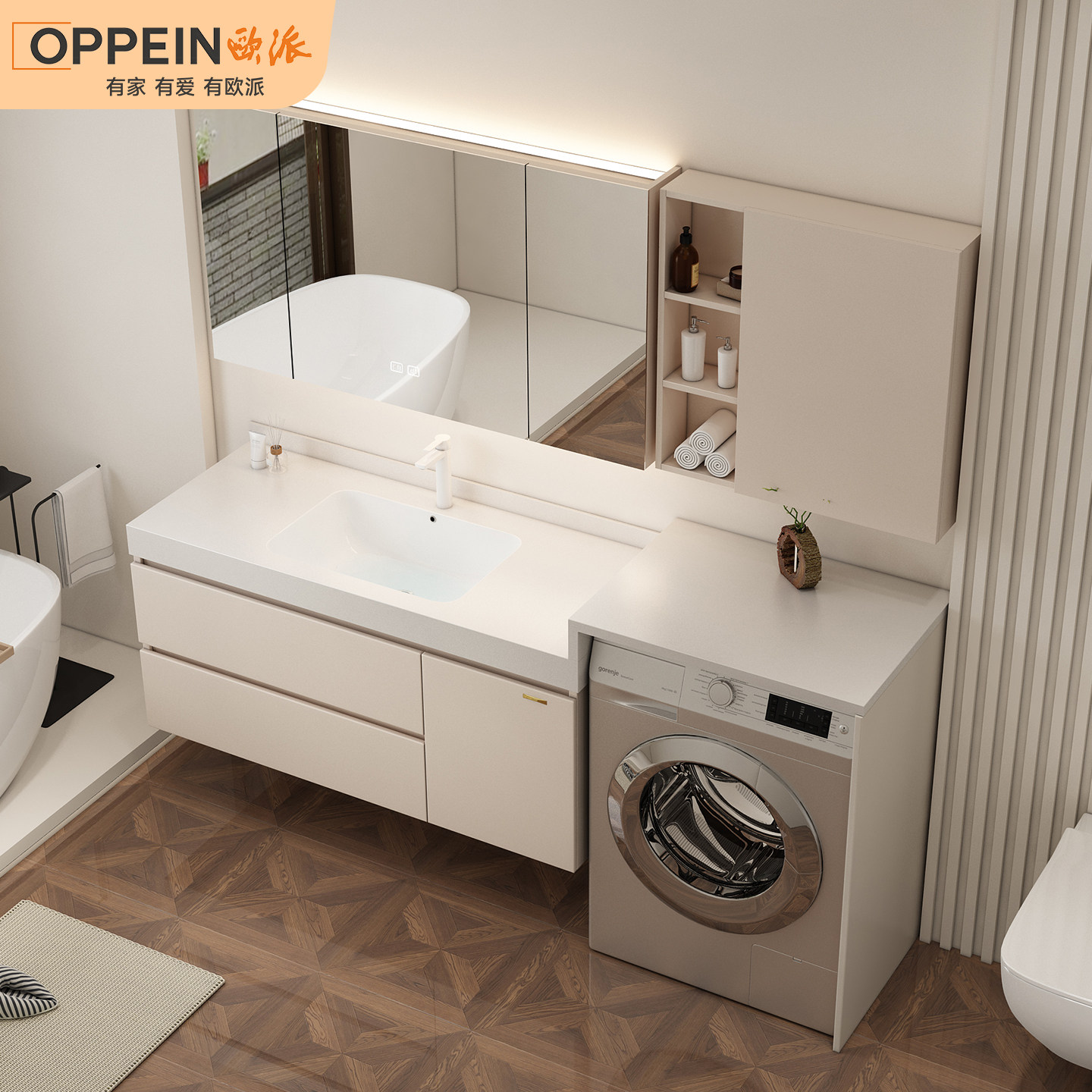欧派岩板无缝陶瓷盆洗衣机柜组合