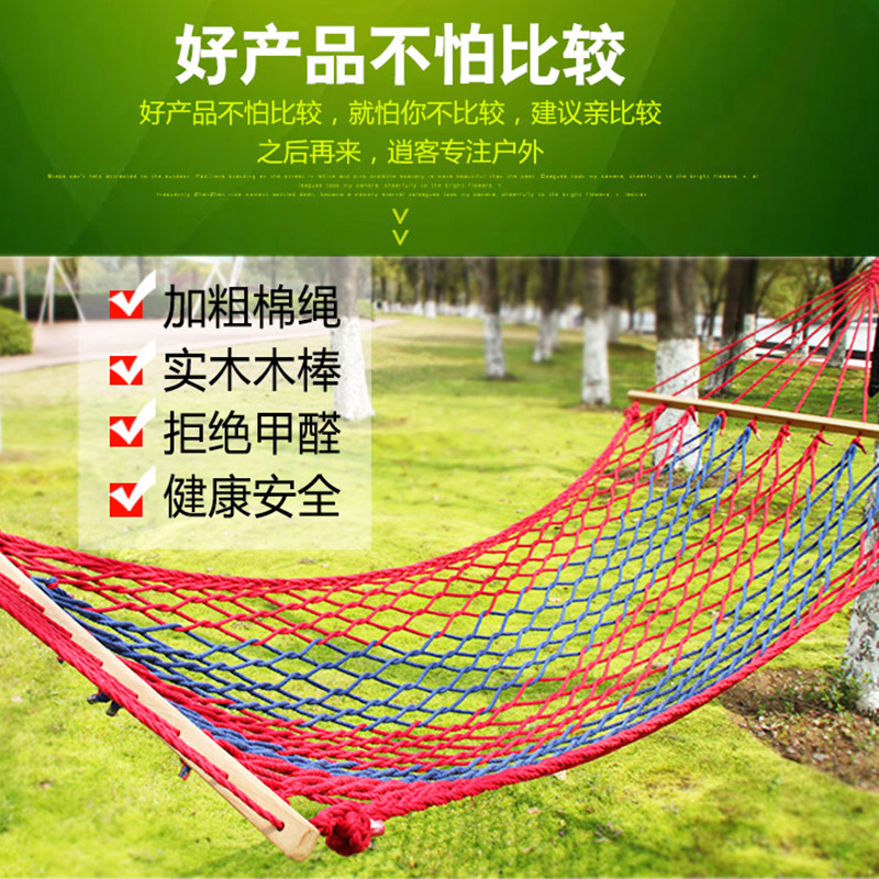 吊床户外家用秋千室内单人双人成人宿舍寝室网状木棍吊床防侧翻