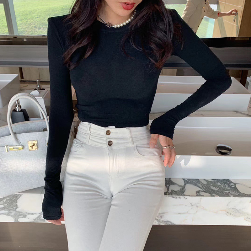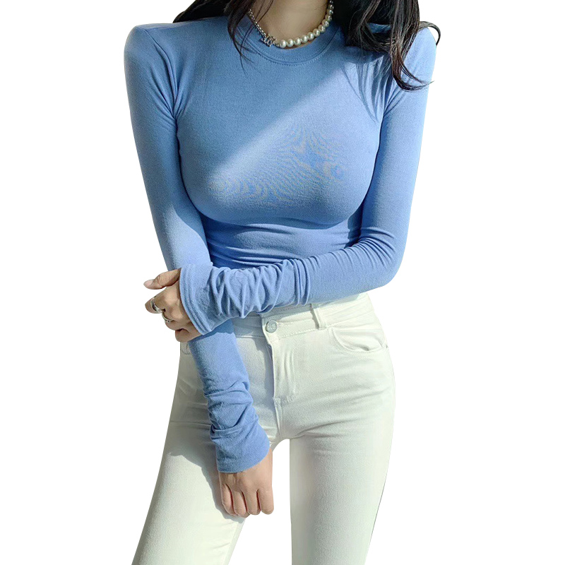 秋季别致纯欲女显胸大内搭辣妹设计感性感打底衫短款紧身上衣T恤