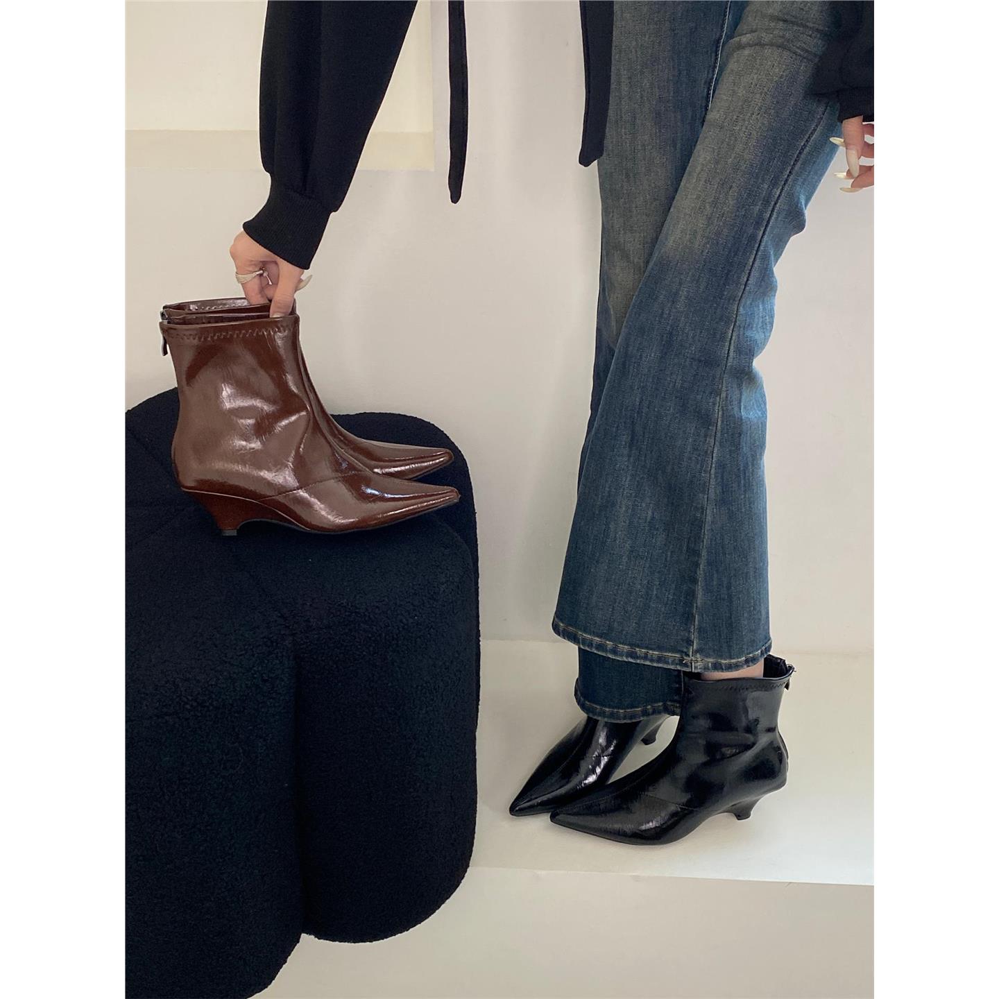 2025秋冬新款韩系尖头粗跟