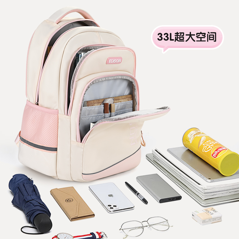 爱迪生书包女初中生2025新款五六年级中学生高中女生减负护脊背包