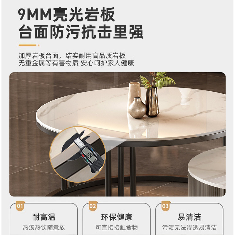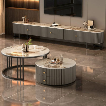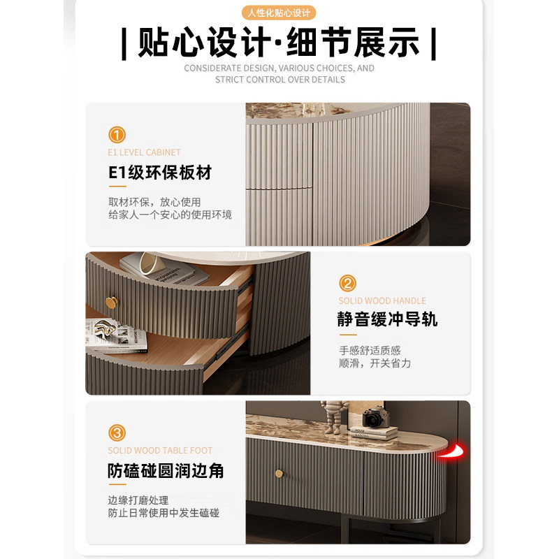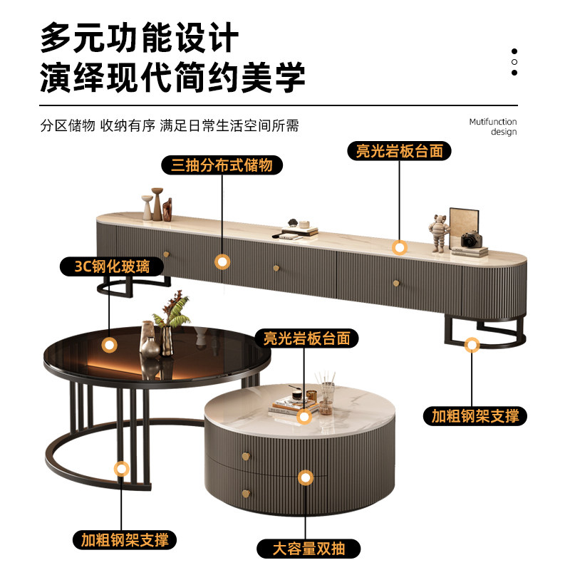 电视柜小户型家用客厅机柜台轻奢简约圆形双抽岩板茶几电视柜组合