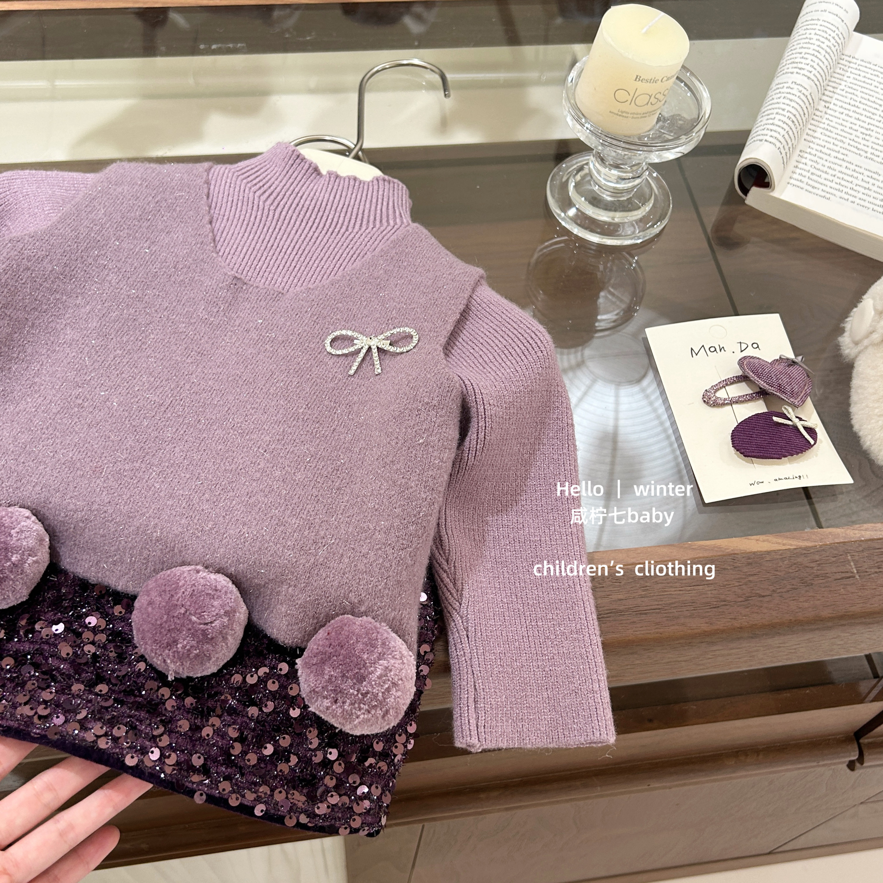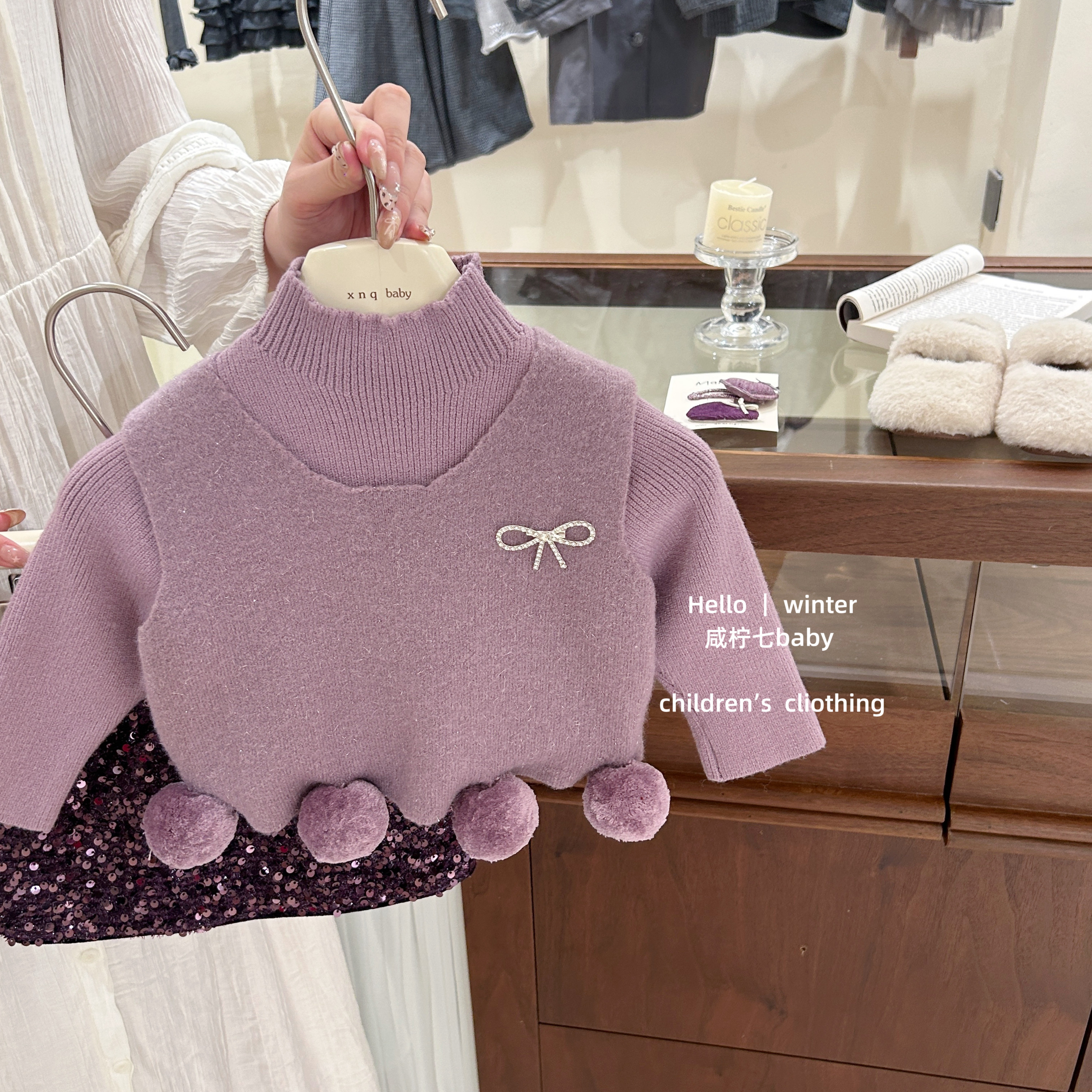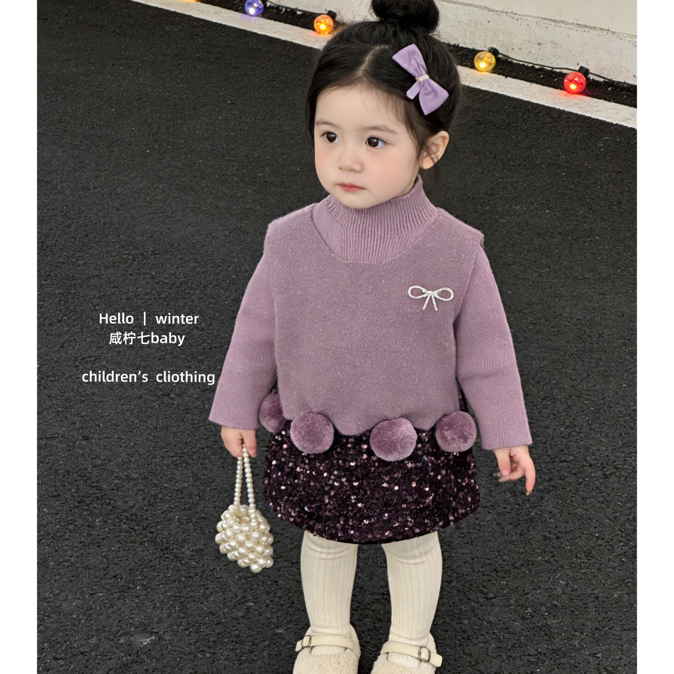 【咸柠七】葡萄啵啵!女童套装小香风毛衣毛球亮片半身裙冬两件套