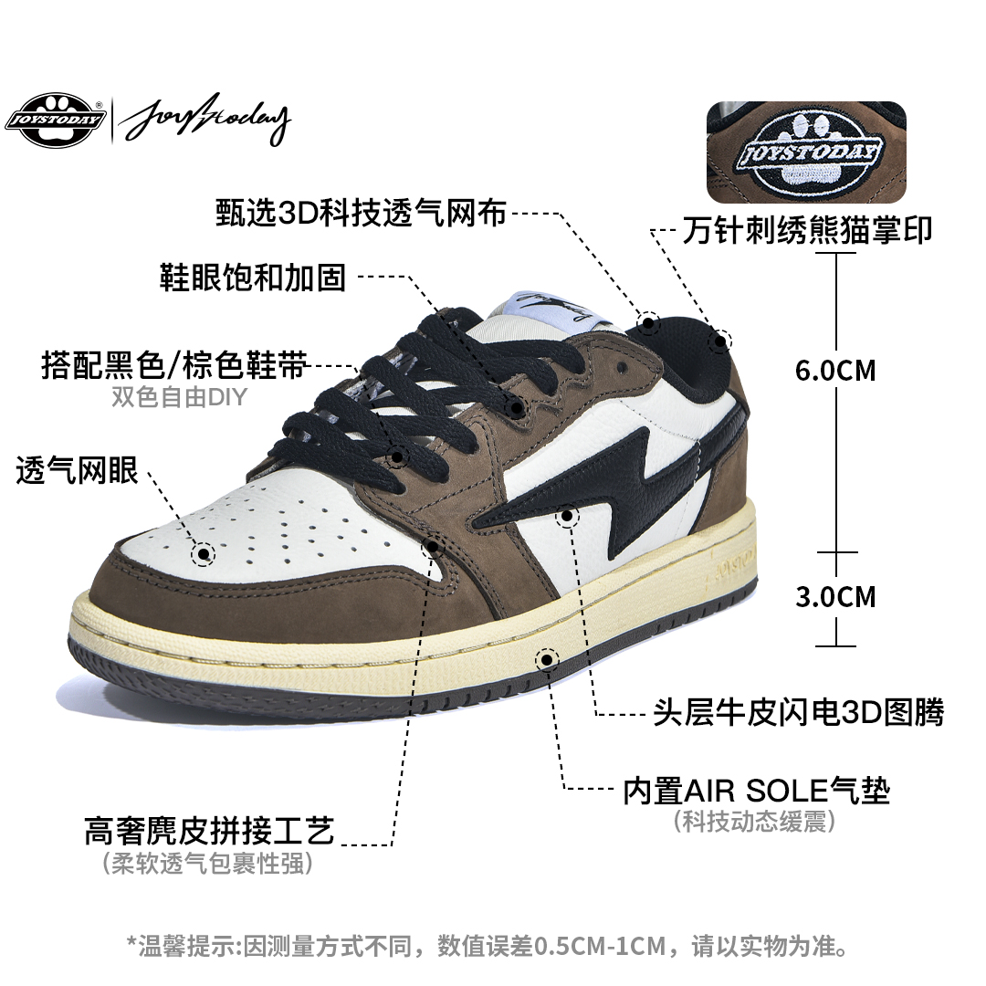 JOYSTODAY闪电AJ1黑摩卡 夏季平底耐磨舒适低帮休闲板鞋 男女同款