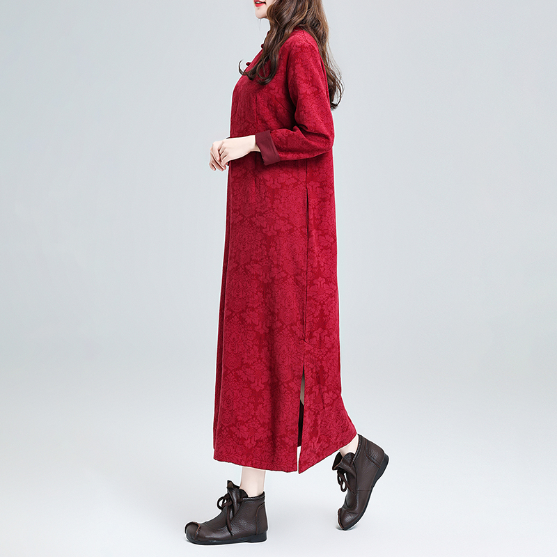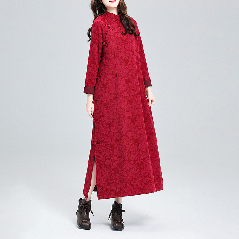 复古棉麻连衣裙女春秋2025新款民族风旗袍茶服保暖宽松中国风袍子