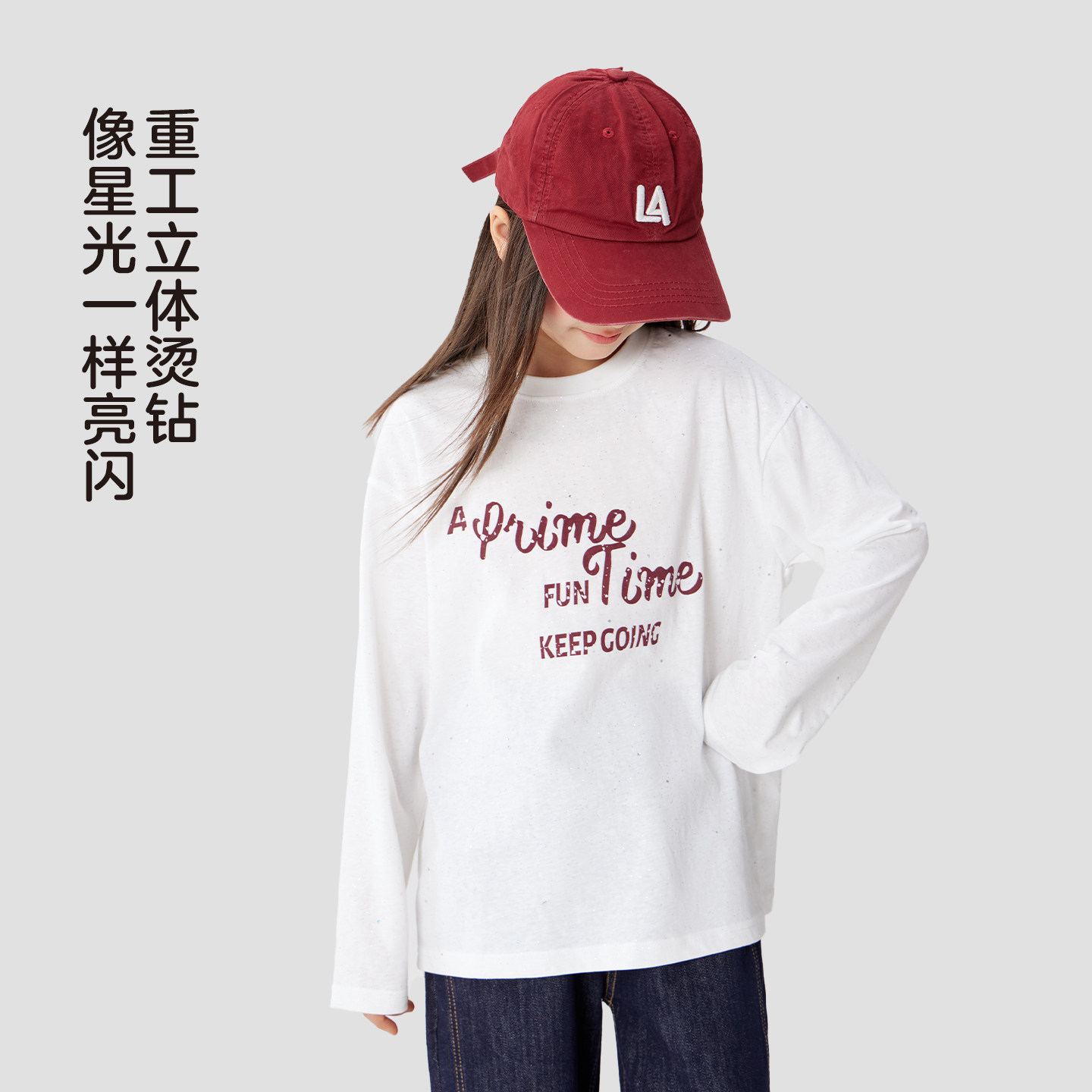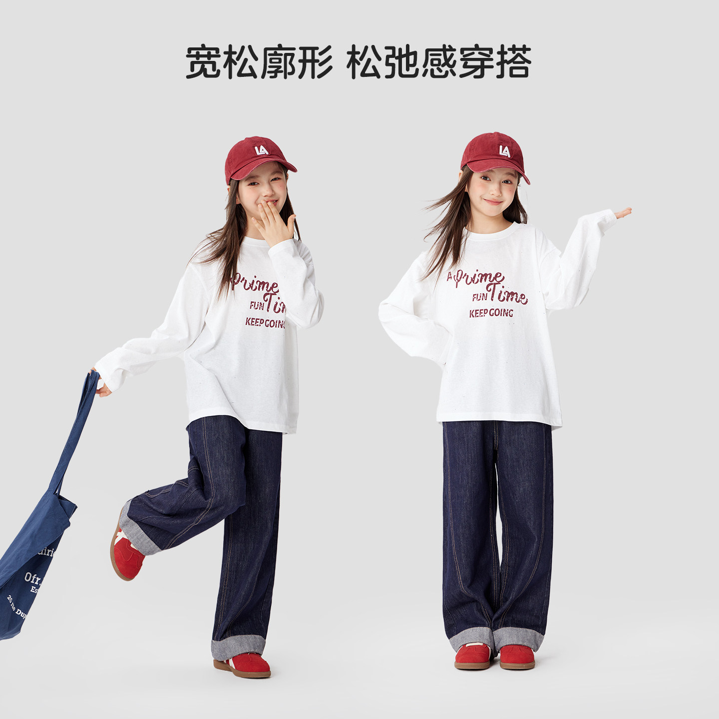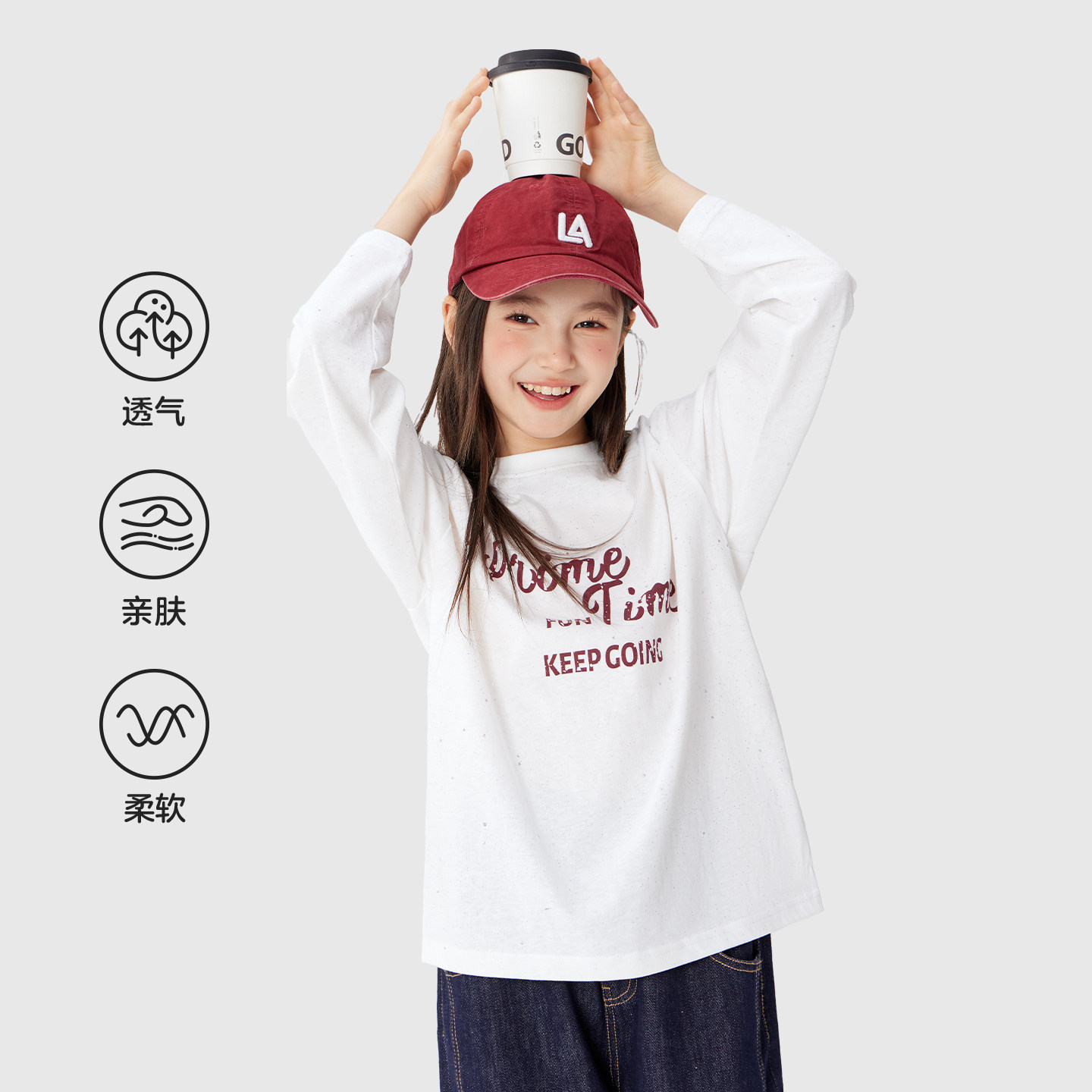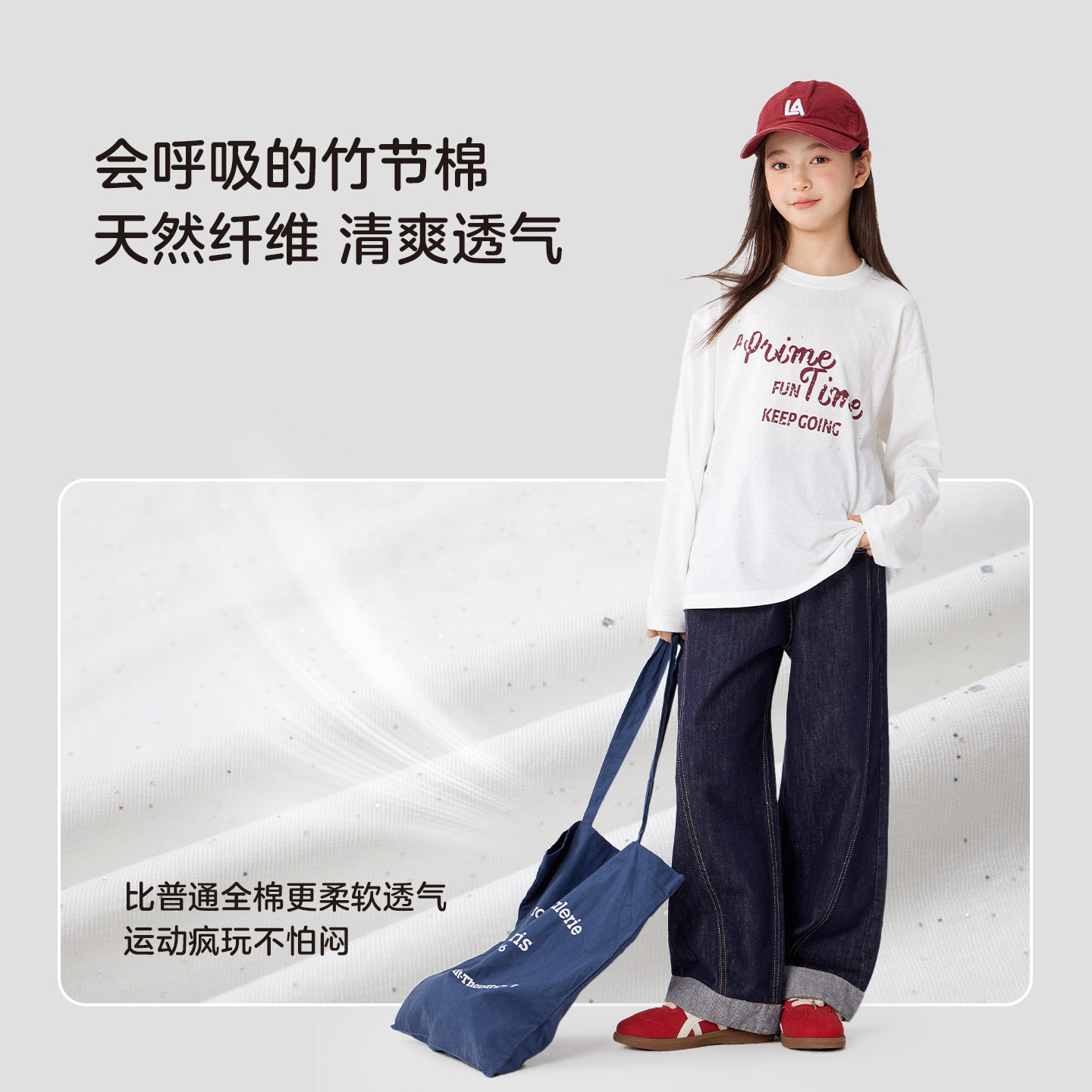 左西童装女童长袖T恤儿童竹节棉打底衫2026新款女孩红色字母上衣