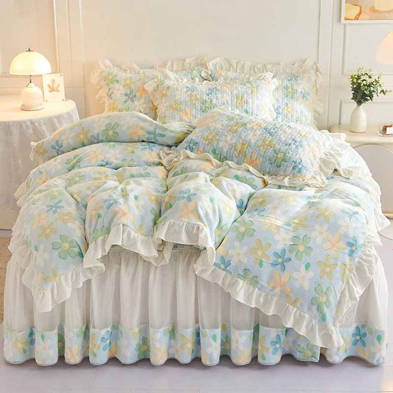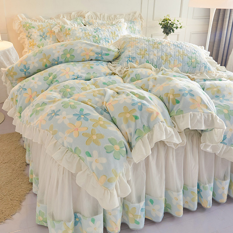 牛奶绒四件套小清新公主风床裙款