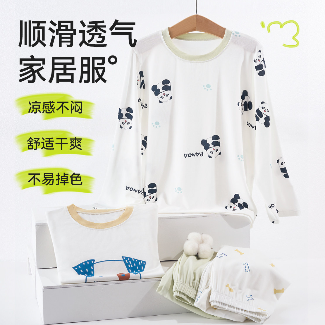 儿童睡衣夏季薄款男童莫代尔短袖宝宝家居服套装中大童夏款空调衫