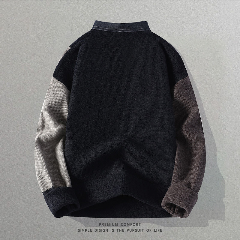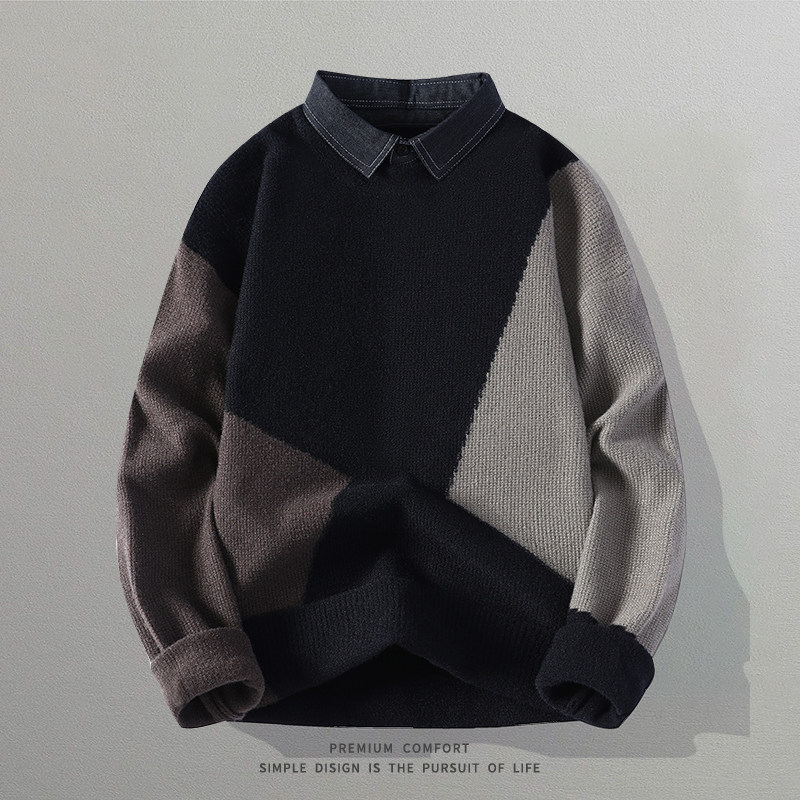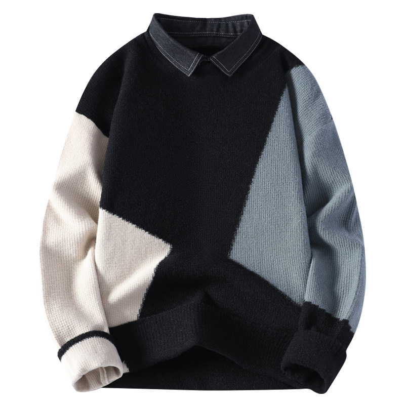 秋冬季新款假两件毛衣男青年学生潮流衬衫领带领针织衫套头毛线衣