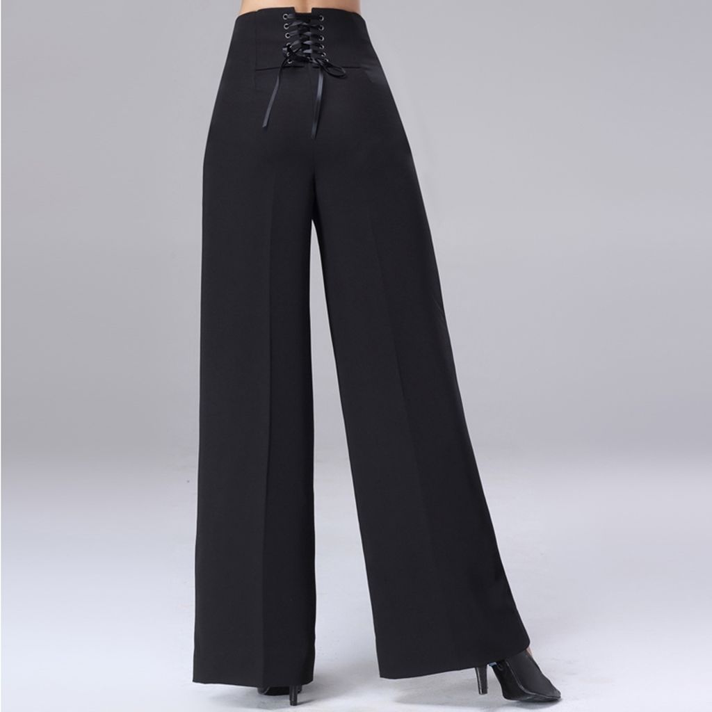 新款系带跳舞长裤阔腿高腰拉丁舞练功服摩登国标交谊舞蹈裤广场舞