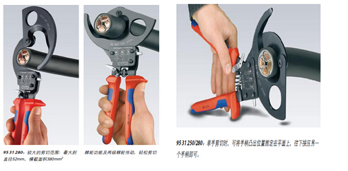 进口德国凯尼派克KNIPEX电缆剪棘轮剪切钳电工9531280 9531250