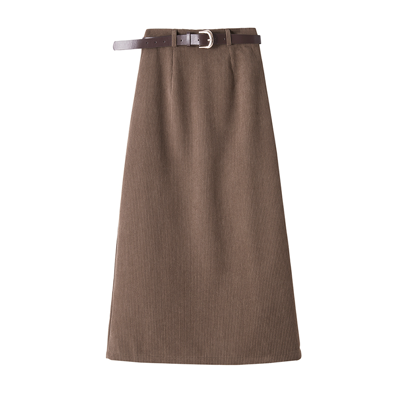 新款秋冬港风复古裙子加厚灯芯绒裙美拉德中长款包臀裙开叉半身裙