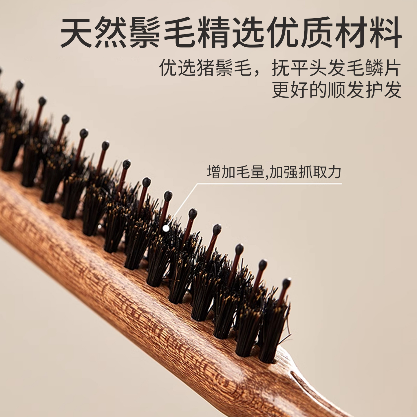 尹秀梳子2025新款蓬松高颅顶女士专用防静电木梳家用猪鬃毛尖尾梳