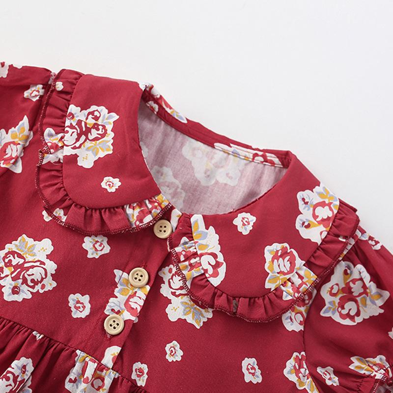 malwee女童短袖连衣裙夏季新款欧美女孩娃娃领洋气印花儿童公主裙