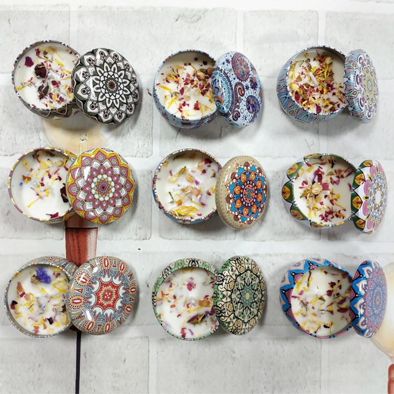 香熏蜡烛礼盒圣诞节精优浪漫礼品铁盒无烟家居精油手工干花大豆蜡