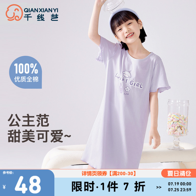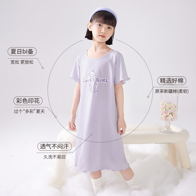 5A抑菌女童睡裙小学生中大童女孩可爱公主短R袖薄款家居裙夏季