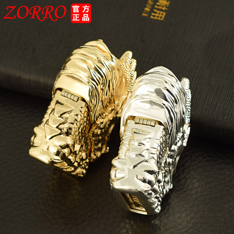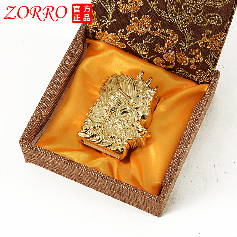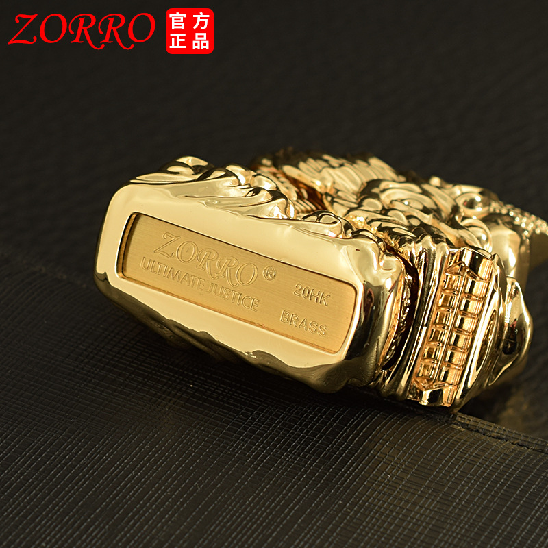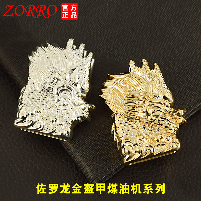 zorro佐罗正品煤油打火机砂轮防风纯铜金银色加重型盔甲神龙头款