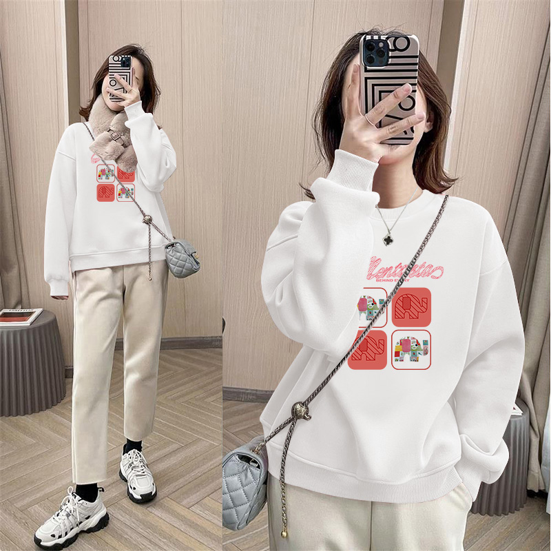 品牌原单外贸时尚卫衣女秋冬季时尚穿搭加绒加厚纯棉杏色学生上衣