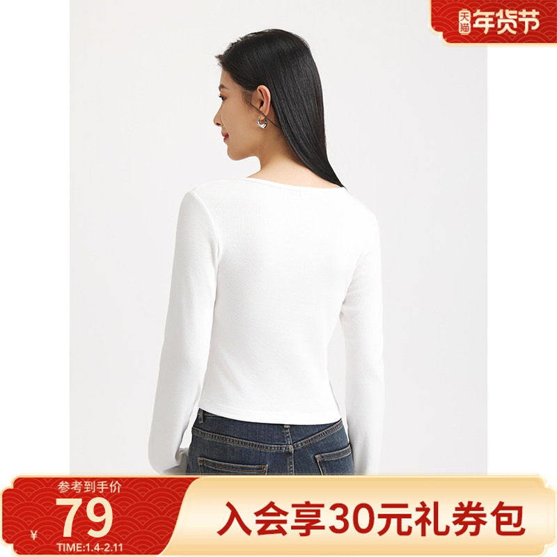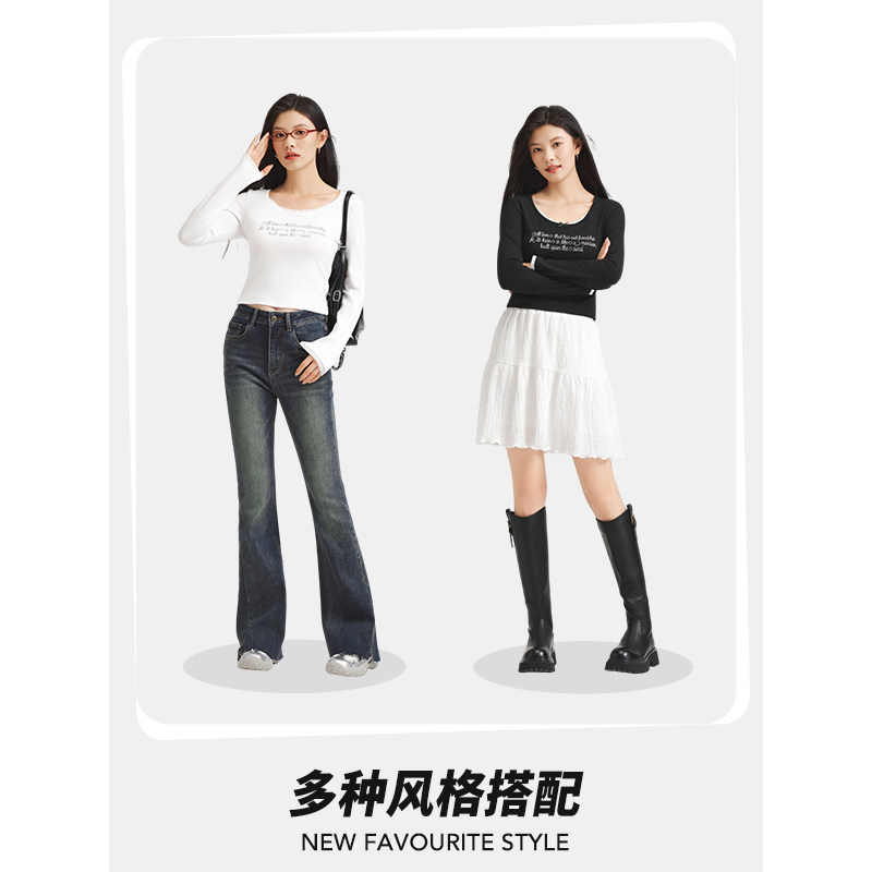 热风2025年秋季新款女士蕾丝字母长T修身显瘦短款小个子长袖上衣