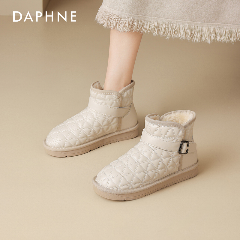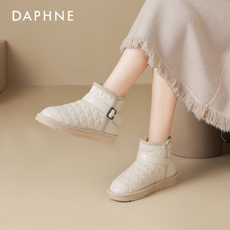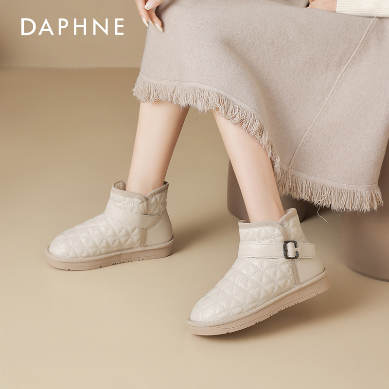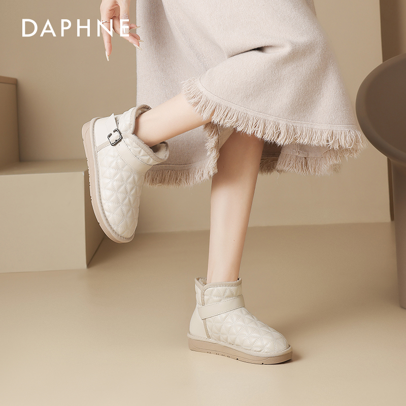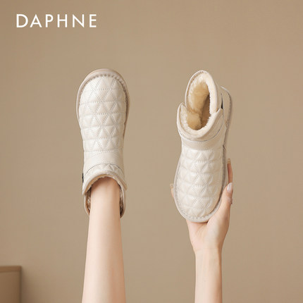 达芙妮白色厚底雪地靴女2025新款冬季保暖面包鞋东北棉鞋加绒加厚