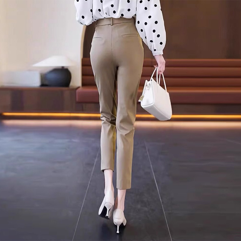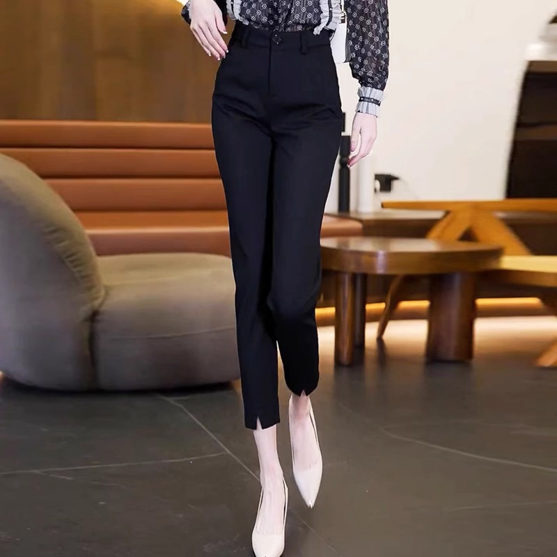 啄木鸟开叉西装裤女小个子2025秋季新款高腰显瘦职业小脚西裤九分