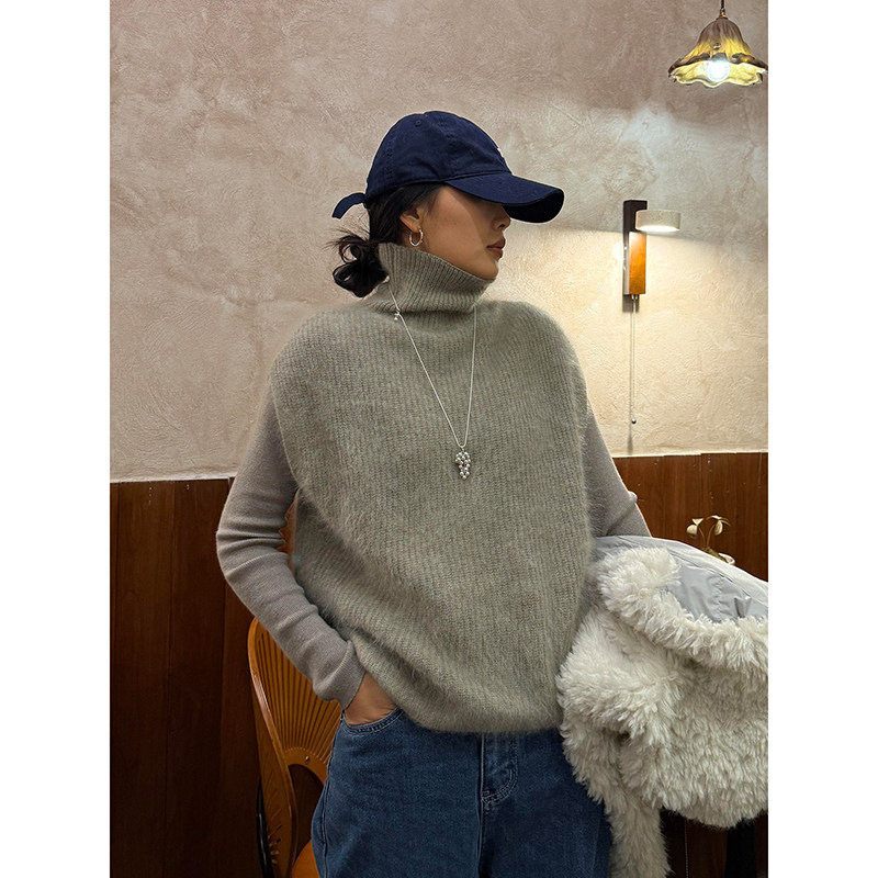高级感灰色高领马甲背心女秋冬软糯慵懒毛衣叠穿坎肩无袖针织上衣