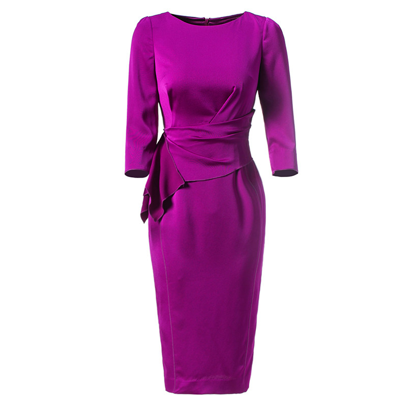 颈袖添香连衣裙女修身名媛优雅御姐风七分袖职业装一字礼服中长款