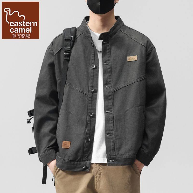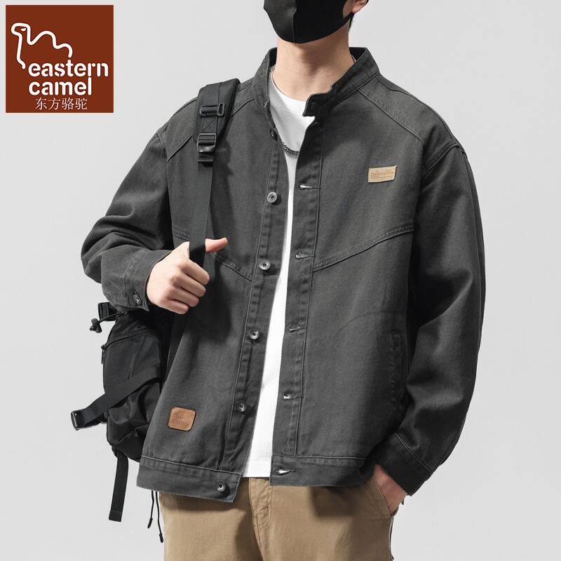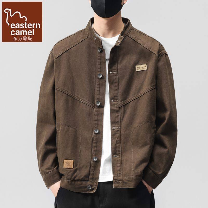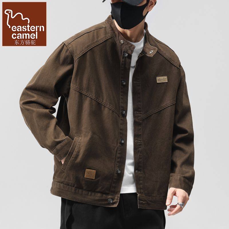 高端男士牛仔外套宽松复古百搭休闲夹克上衣潮流咖啡色秋季牛仔衣
