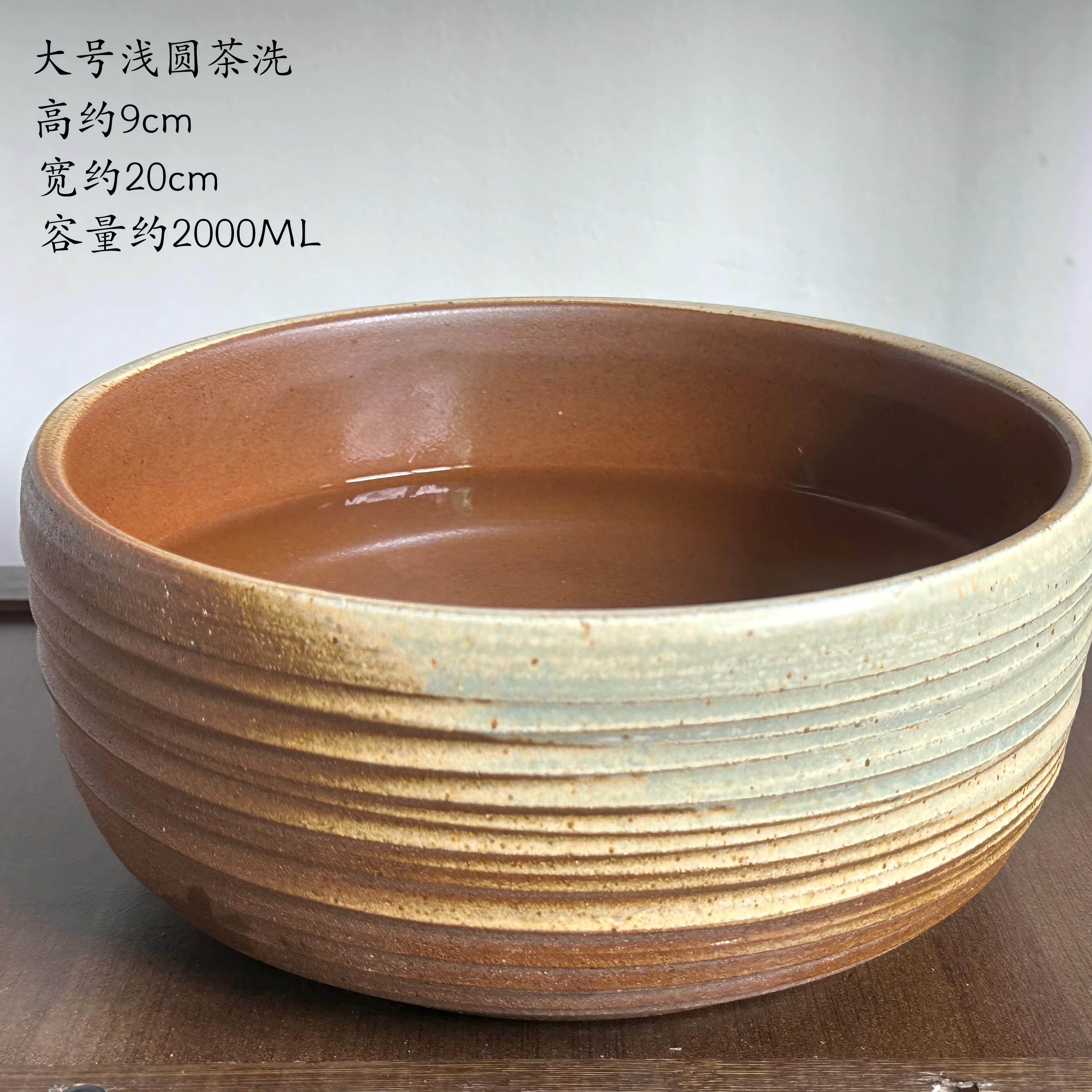 中式茶道配件复古粗陶水盂茶洗缸大小号加厚盆器茶渣缸建水茶洗