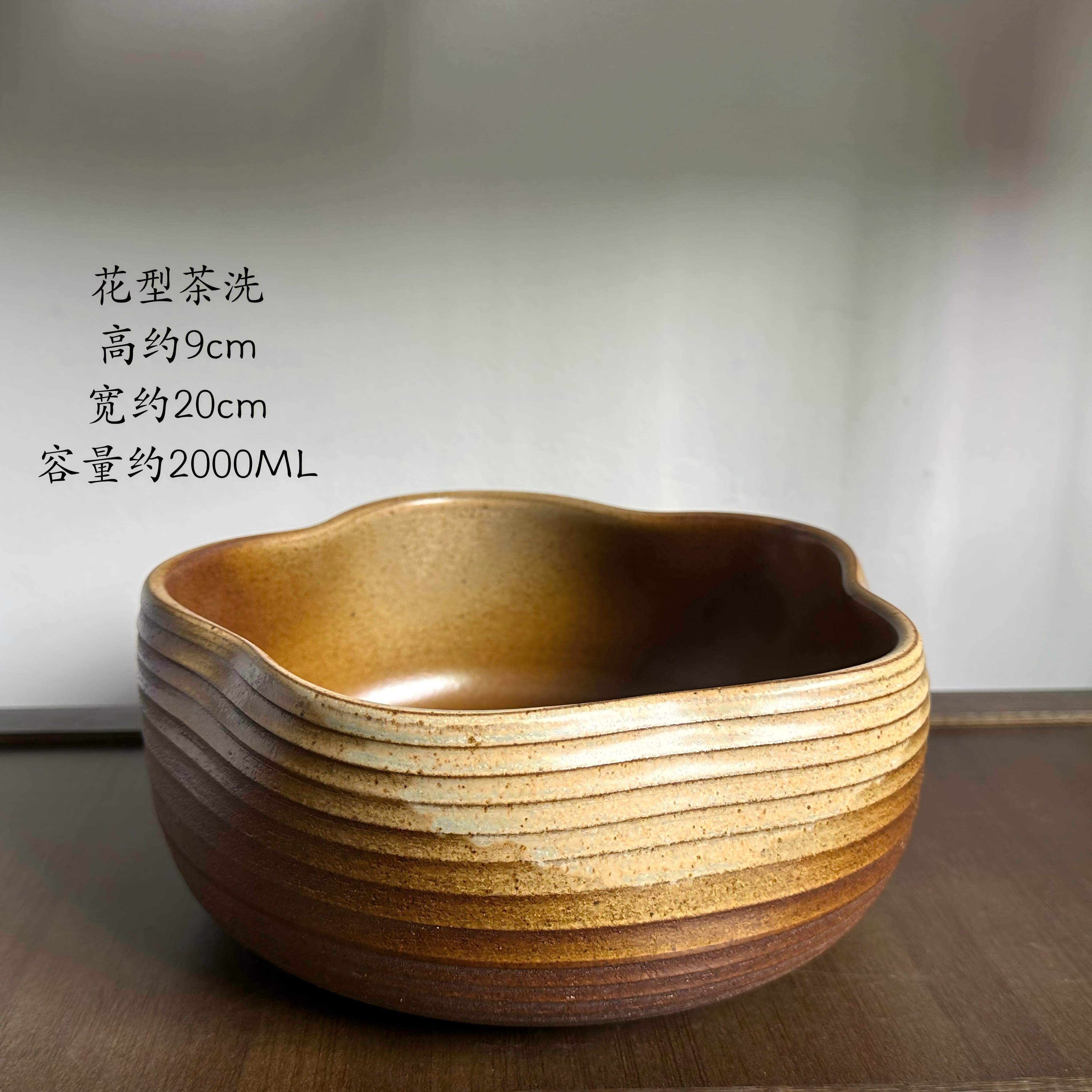 中式复古粗陶茶道配件粗陶茶洗