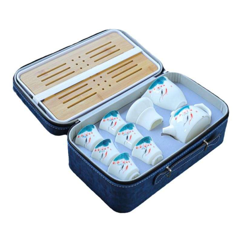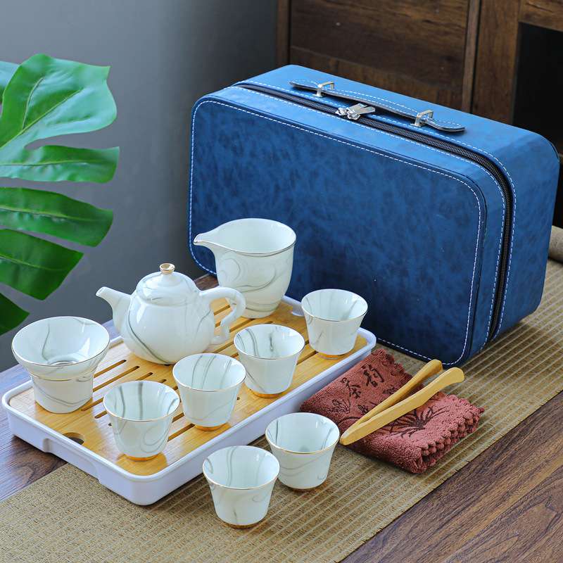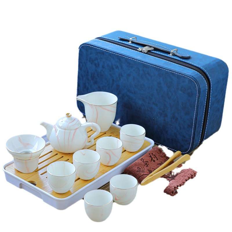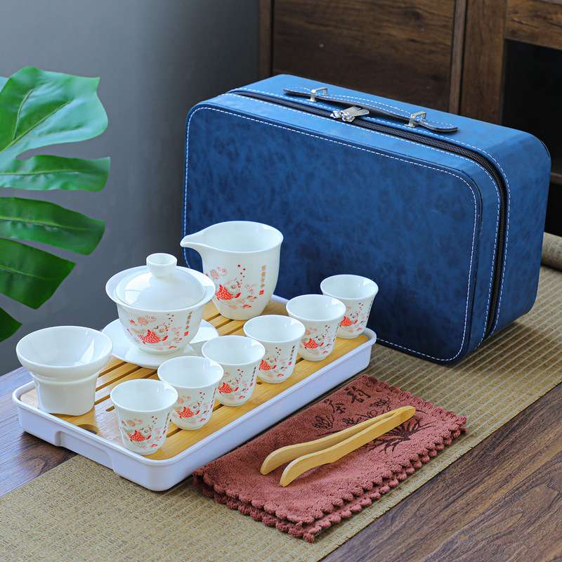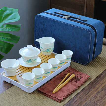 羊脂玉旅行茶具陶瓷盖碗茶壶茶杯白瓷家用简约中式整套便携式套装