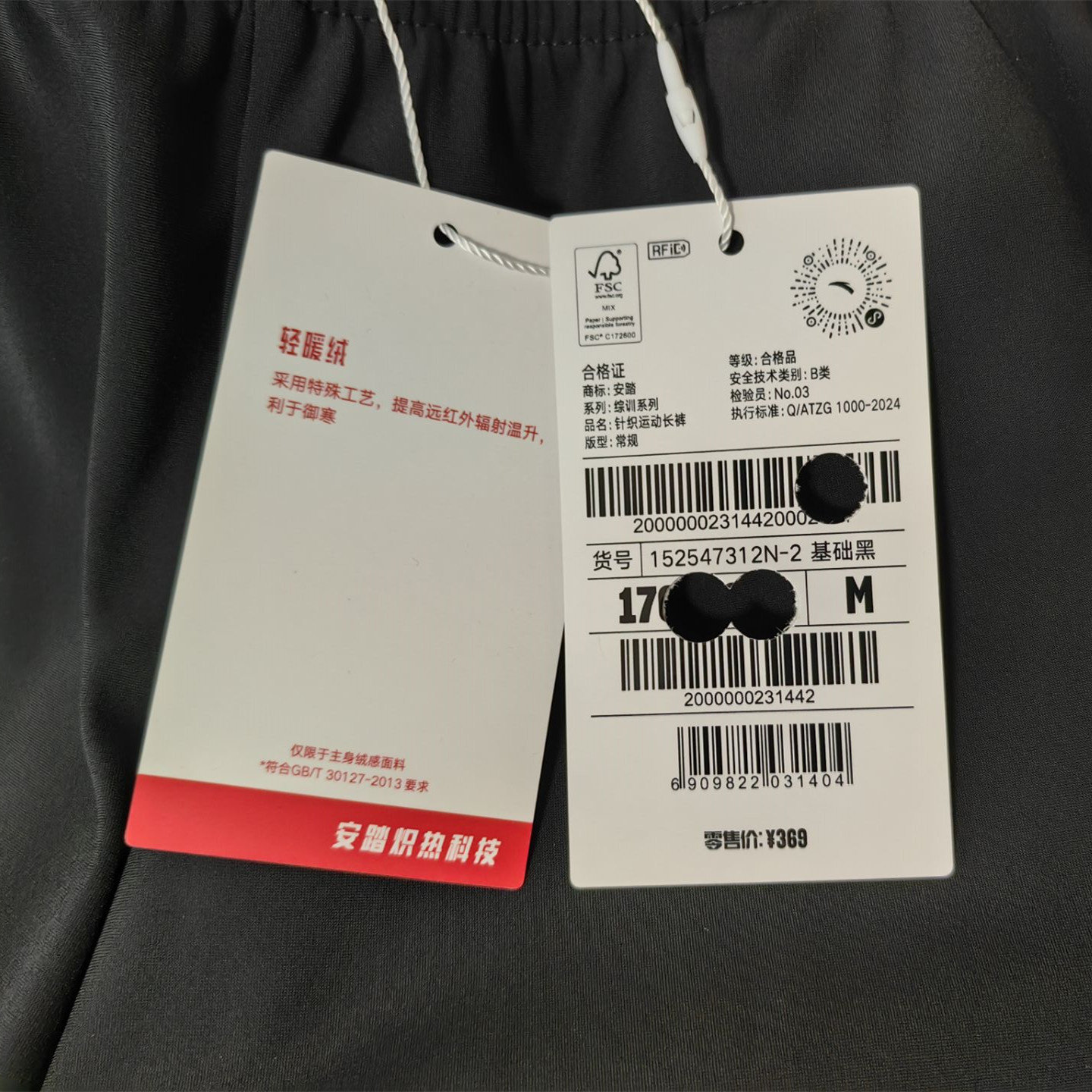 安踏运动裤男2025冬季新款加绒保暖舒适百搭梭织直筒裤152547312N