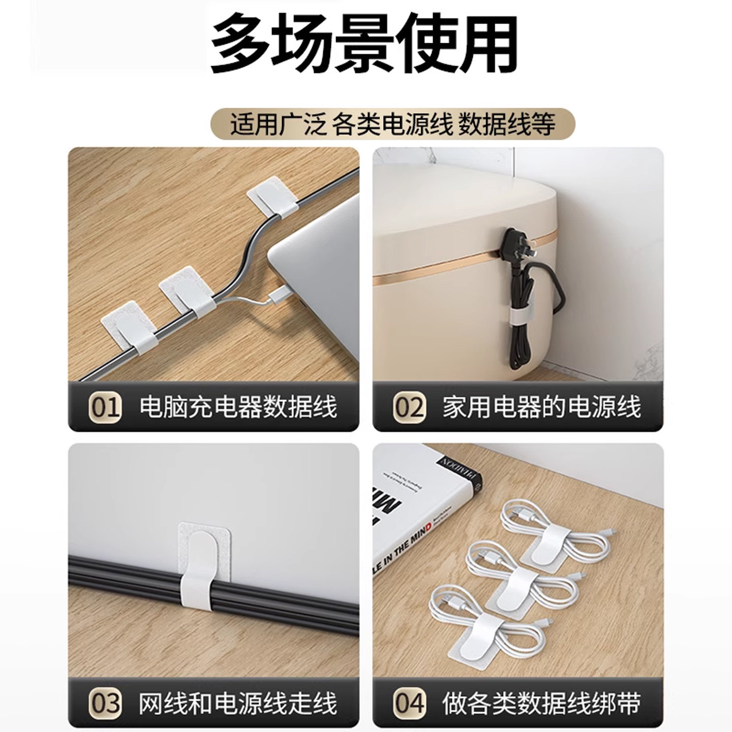 背胶魔术贴理线器充电线数据线收纳壁挂墙上门后固定整理集线绑带