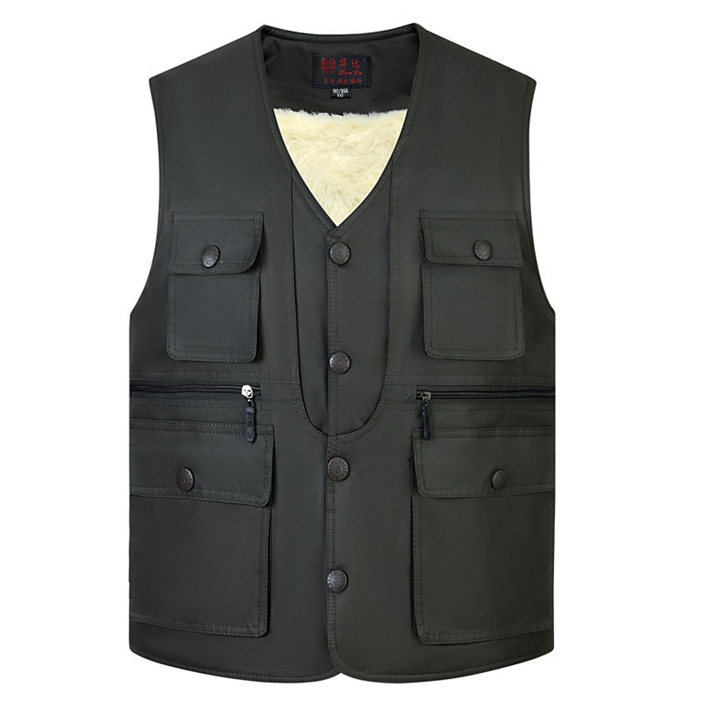 秋冬季中老年加绒加厚棉马甲男休闲宽松多口袋马夹加大码保暖背心