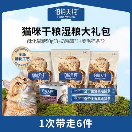 【U享礼】伯纳天纯全价酥化猫粮试吃鸡肉乳鸽猫罐头主食猫条组合