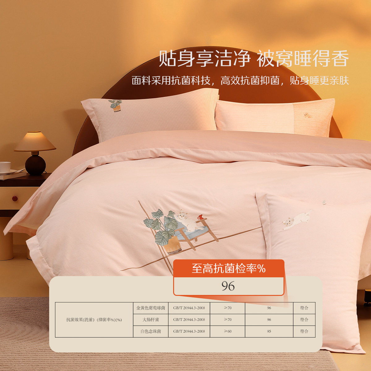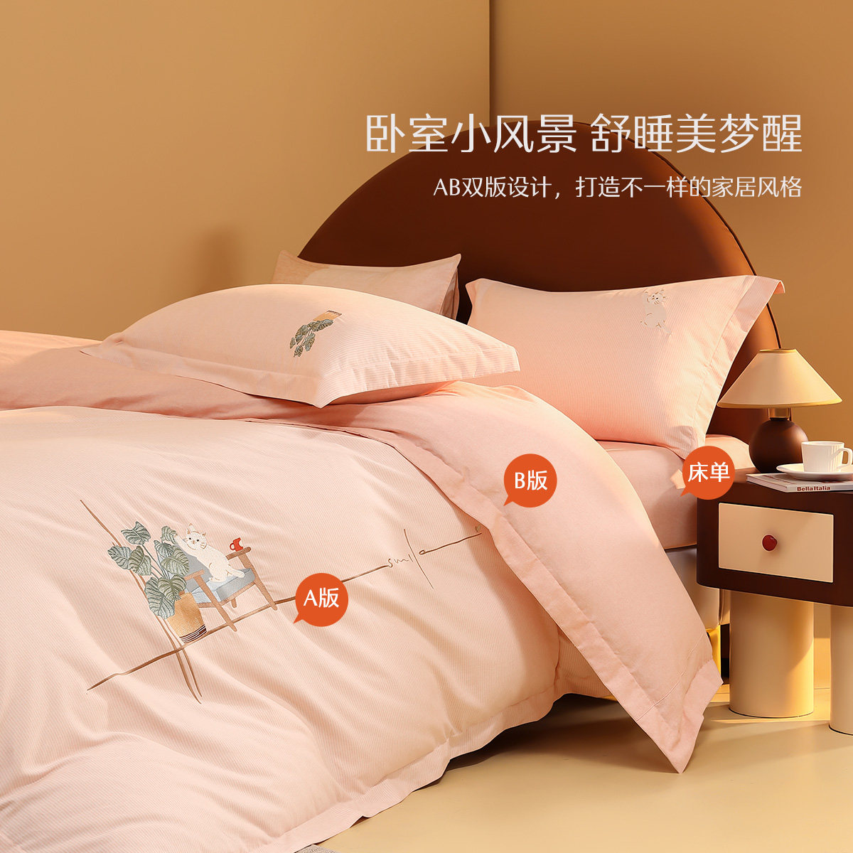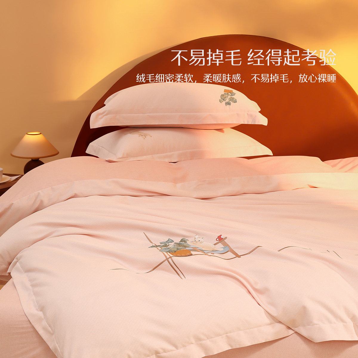 水星家纺全棉磨毛四件套抗菌纯棉保暖套件家用双人床单被套床品