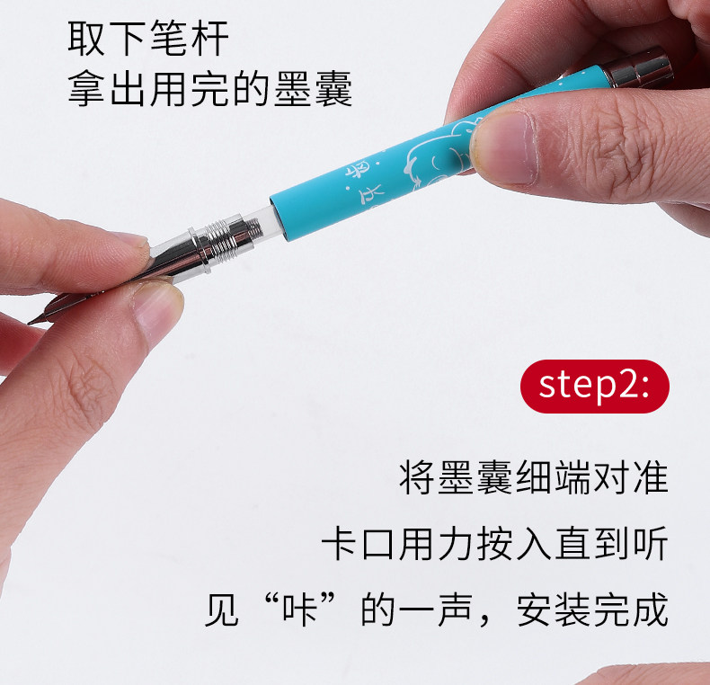 汉诺细墨囊小口径2.6mm可擦蓝色1518蓝黑英雄晨光小学生钢笔专用