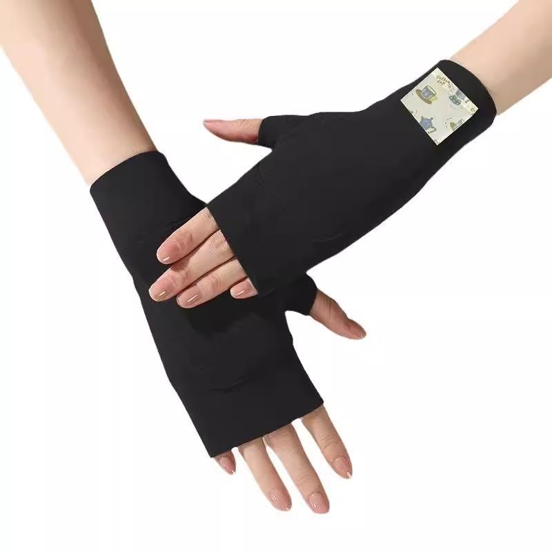 德绒加兜手套男女秋冬保暖自发热双面加绒加厚露指学生写字护手套