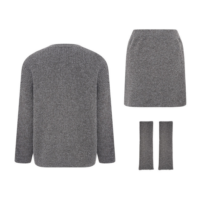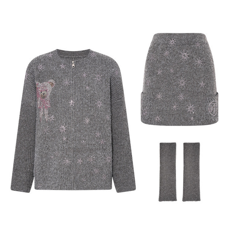 TCH私服2025秋冬新款烫钻时尚气质毛衣外套短裙套装女T75D07E1042