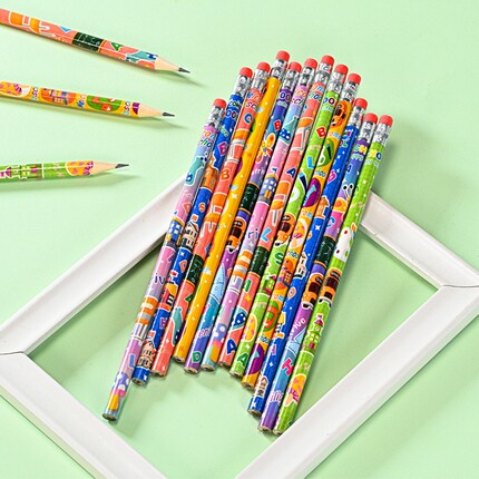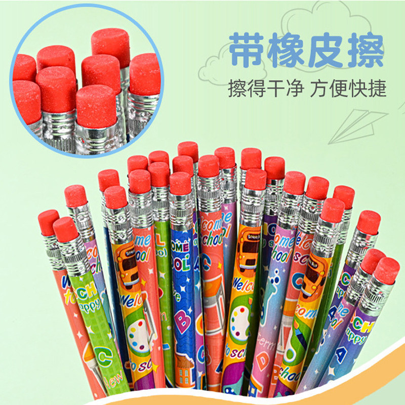混色卡通铅笔HB铅笔考试专用书写铅笔无铅毒小学生幼儿园儿童学习用橡皮不易断原木硬度开学铅芯套膜铅笔批发