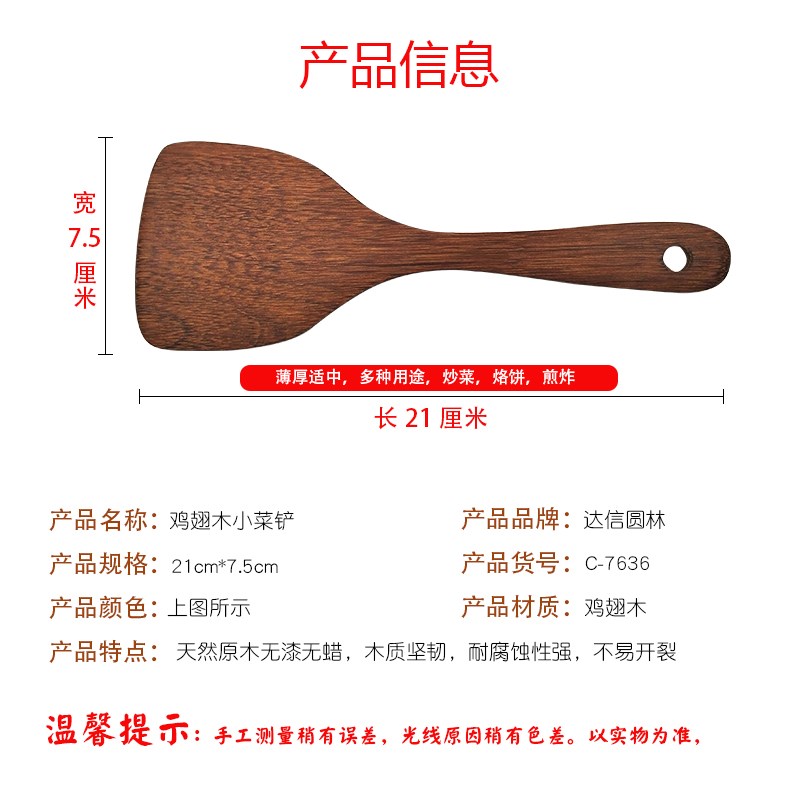 小木铲烙饼精致无漆无蜡天然鸡翅木不粘锅专用舒适耐高温原木菜铲