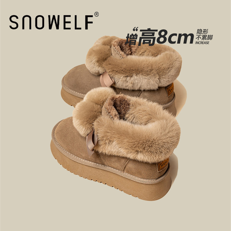 可爱毛球雪地靴女2025新款冬皮毛一体防滑加绒短筒厚底内增高棉鞋