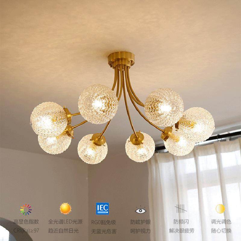 美式球形玻璃式轻厅奢光谱卧室44吊灯餐厅主卧客波法浪雪球吸顶全