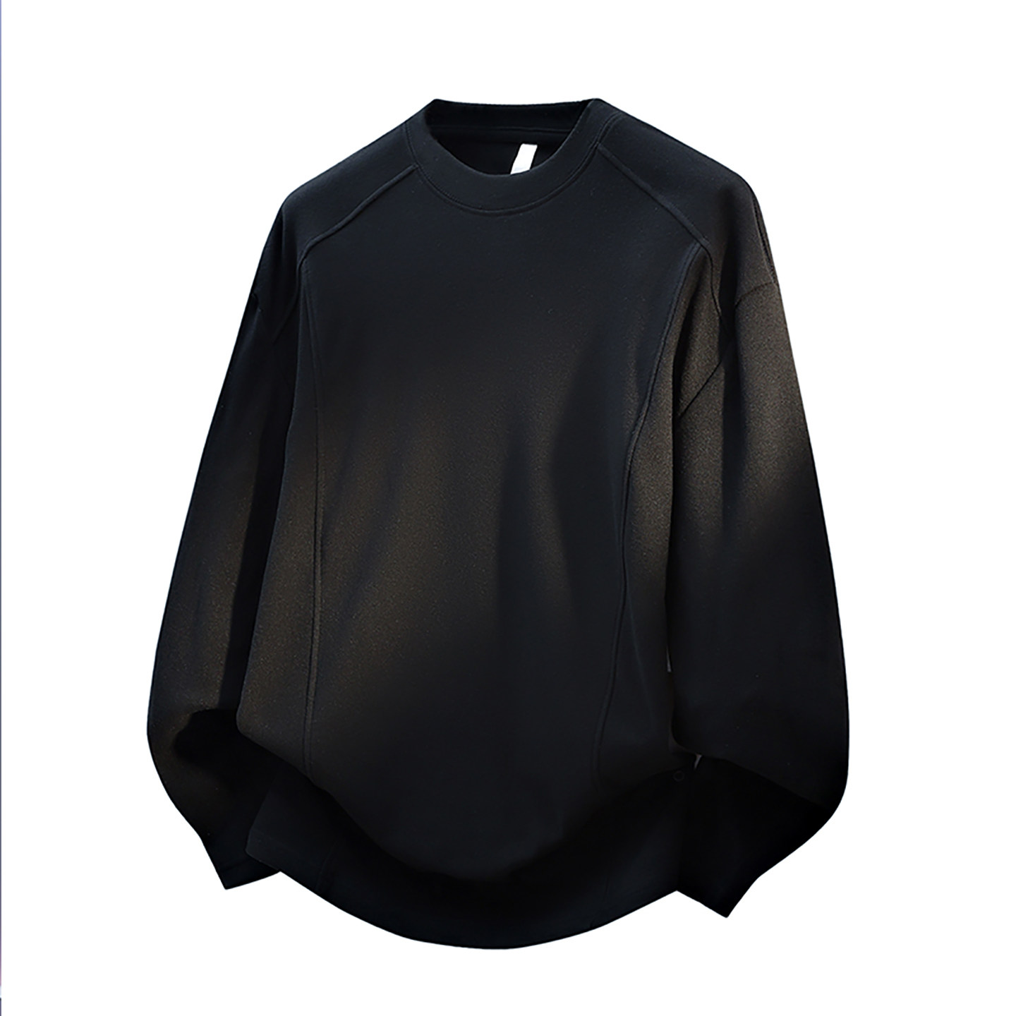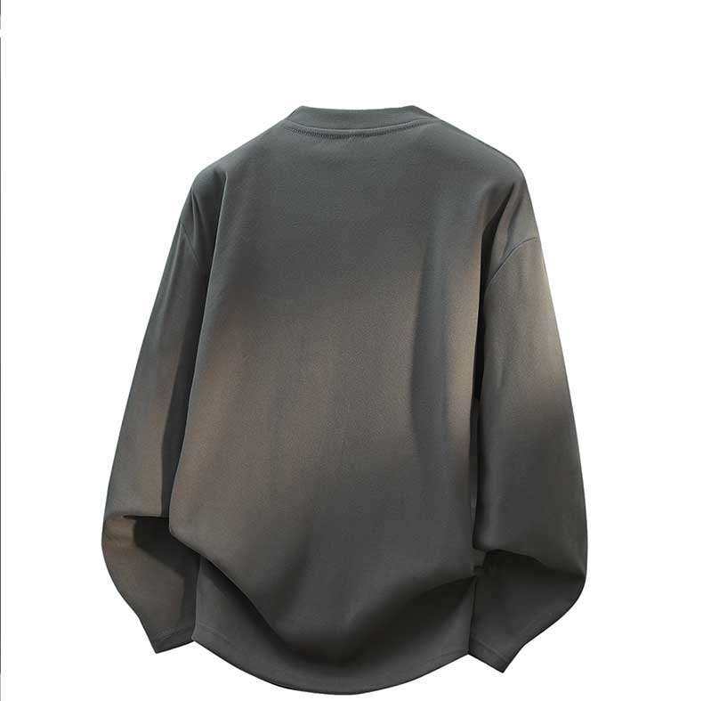 高品质秋冬男士圆领长袖打底衫重磅纯色潮流青年上衣百搭宽松T恤